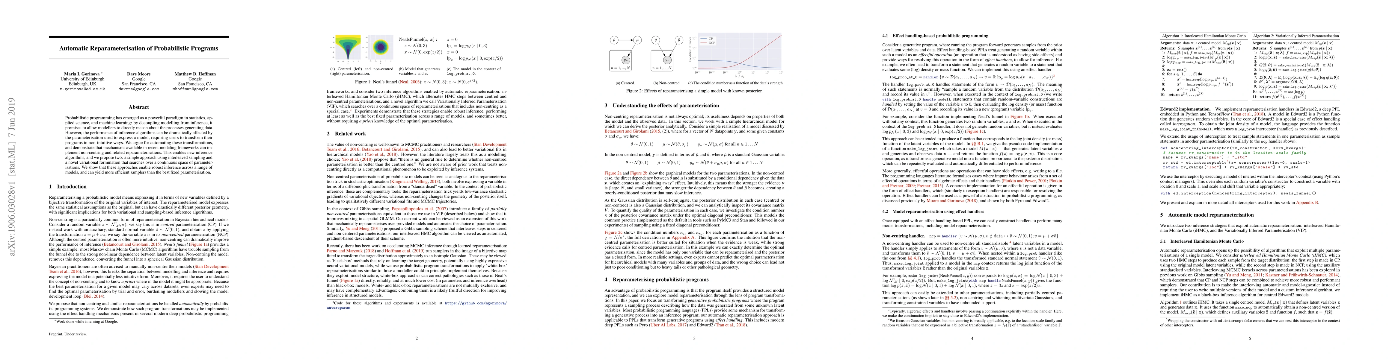 Probabilistic programming has emerged as a powerful paradigm in statistics, applied science, and machine learning: by decoupling modelling from inference, it promises to allow modellers to directly reason about the processes generating data. However, the performance of inference algorithms can be dramatically affected by the parameterisation used to express a model, requiring users to transform their programs in non-intuitive ways. We argue for automating these transformations, and demonstrate that mechanisms available in recent modeling frameworks can implement non-centring and related reparameterisations. This enables new inference algorithms, and we propose two: a simple approach using interleaved sampling and a novel variational formulation that searches over a continuous space of parameterisations. We show that these approaches enable robust inference across a range of models, and can yield more efficient samplers than the best fixed parameterisation.