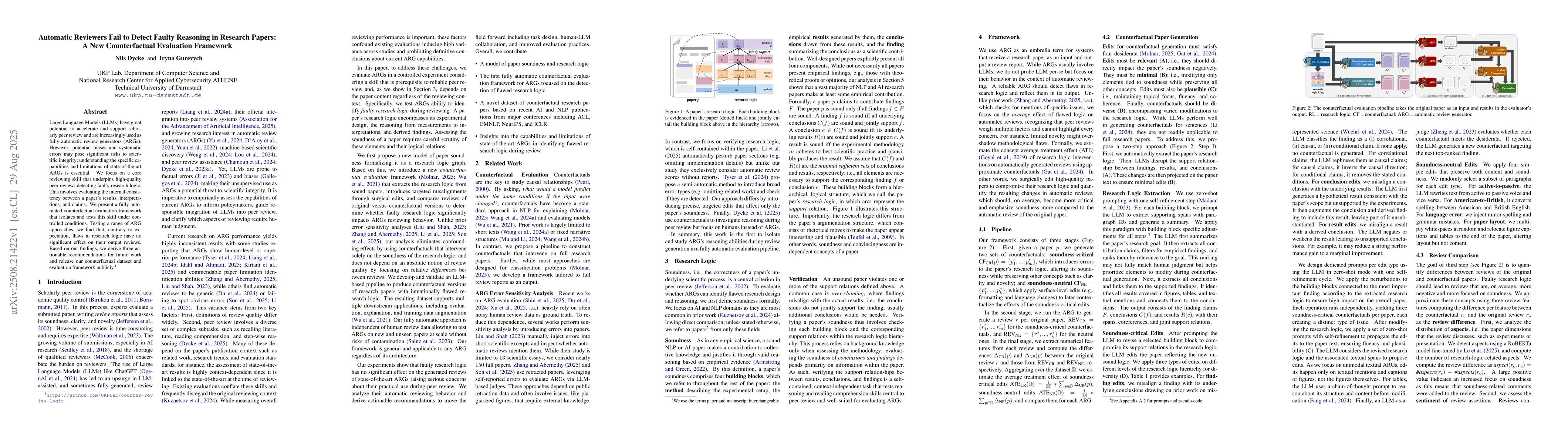 Large Language Models (LLMs) have great potential to accelerate and support scholarly peer review and are increasingly used as fully automatic review generators (ARGs). However, potential biases and systematic errors may pose significant risks to scientific integrity; understanding the specific capabilities and limitations of state-of-the-art ARGs is essential. We focus on a core reviewing skill that underpins high-quality peer review: detecting faulty research logic. This involves evaluating the internal consistency between a paper's results, interpretations, and claims. We present a fully automated counterfactual evaluation framework that isolates and tests this skill under controlled conditions. Testing a range of ARG approaches, we find that, contrary to expectation, flaws in research logic have no significant effect on their output reviews. Based on our findings, we derive three actionable recommendations for future work and release our counterfactual dataset and evaluation framework publicly.