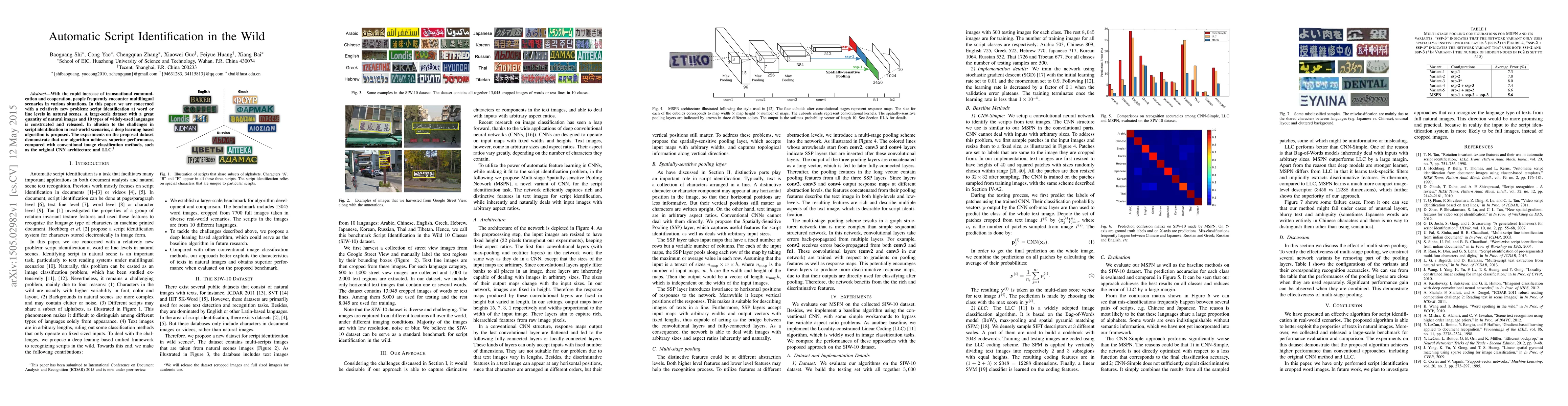 With the rapid increase of transnational communication and cooperation, people frequently encounter multilingual scenarios in various situations. In this paper, we are concerned with a relatively new problem: script identification at word or line levels in natural scenes. A large-scale dataset with a great quantity of natural images and 10 types of widely used languages is constructed and released. In allusion to the challenges in script identification in real-world scenarios, a deep learning based algorithm is proposed. The experiments on the proposed dataset demonstrate that our algorithm achieves superior performance, compared with conventional image classification methods, such as the original CNN architecture and LLC.