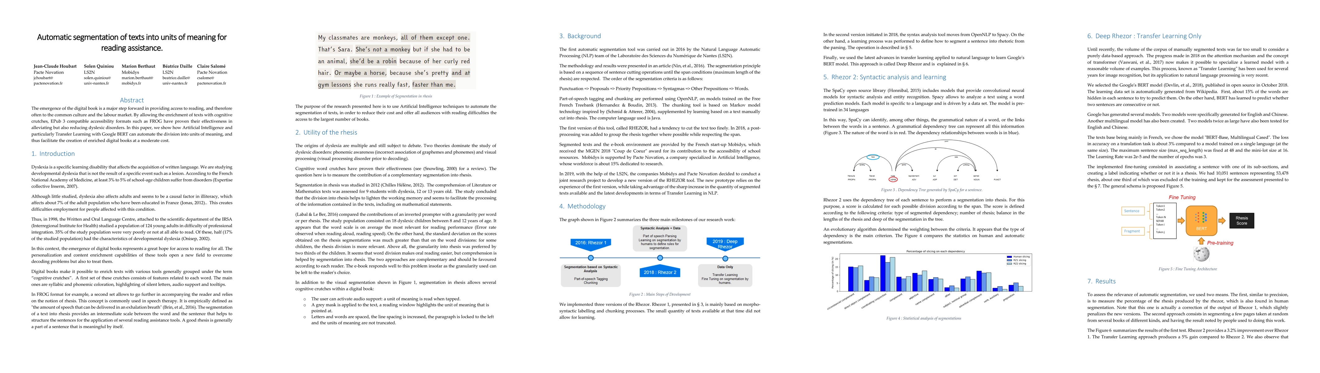 The emergence of the digital book is a major step forward in providing access to reading, and therefore often to the common culture and the labour market. By allowing the enrichment of texts with cognitive crutches, EPub 3 compatible accessibility formats such as FROG have proven their effectiveness in alleviating but also reducing dyslexic disorders. In this paper, we show how Artificial Intelligence and particularly Transfer Learning with Google BERT can automate the division into units of meaning, and thus facilitate the creation of enriched digital books at a moderate cost.