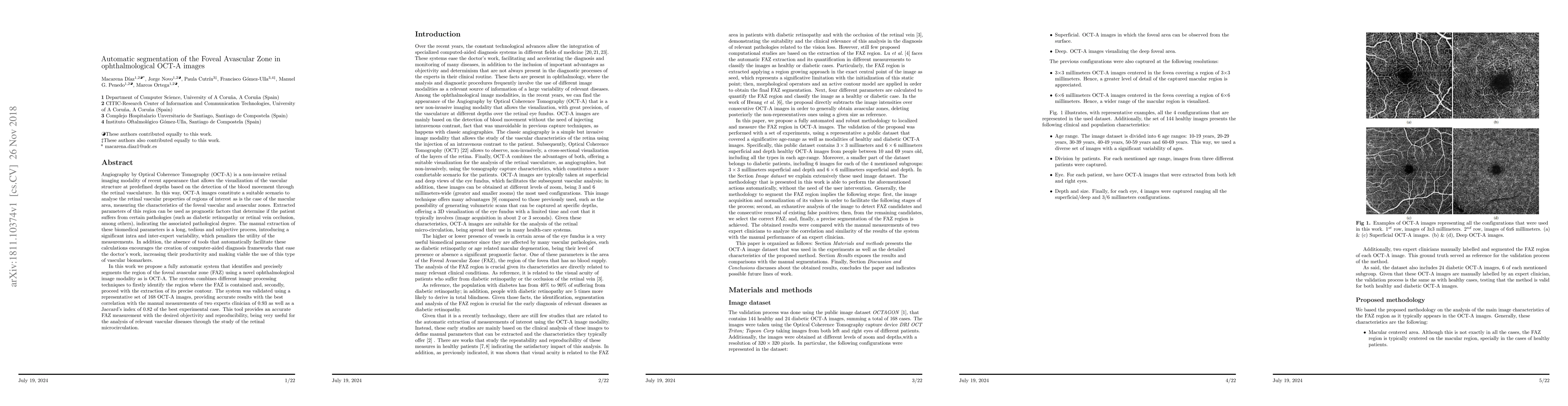 This paper proposes a fully automatic system for segmenting the foveal avascular zone (FAZ) in Optical Coherence Tomography Angiography (OCT-A) images, combining image processing techniques to enhance accuracy. The system was validated on 168 images, demonstrating high correlation with manual expert measurements and significant potential for aiding in the diagnosis of retinal vascular diseases.