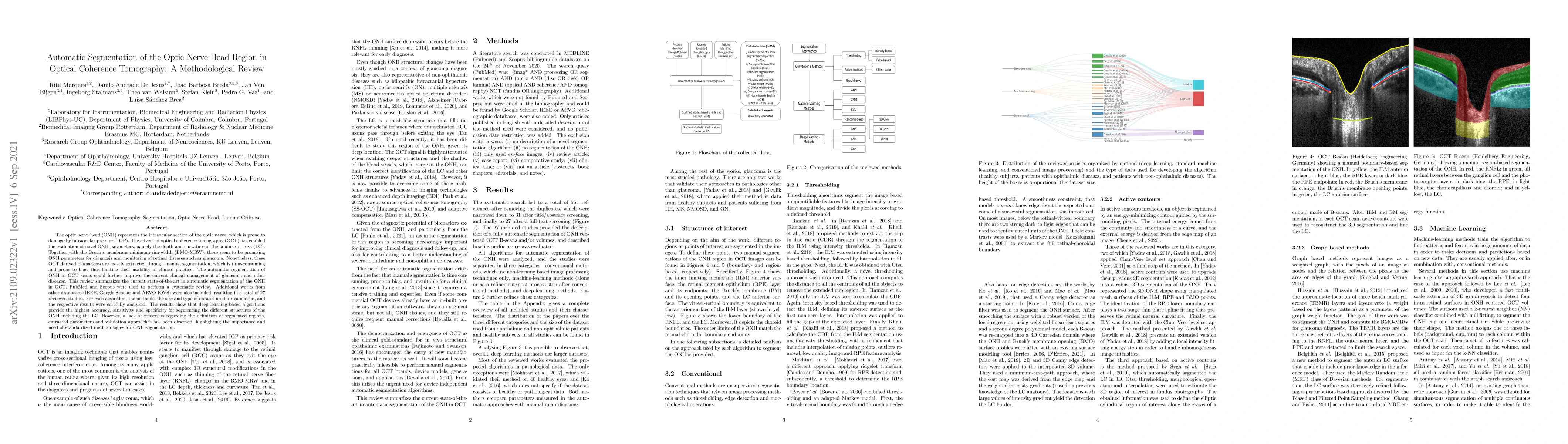 This review evaluates current methodologies for automatic segmentation of the optic nerve head in optical coherence tomography (OCT) scans, highlighting deep learning's superior accuracy. Despite promising results, a lack of standardization in definitions and validation methods remains a challenge for clinical implementation.