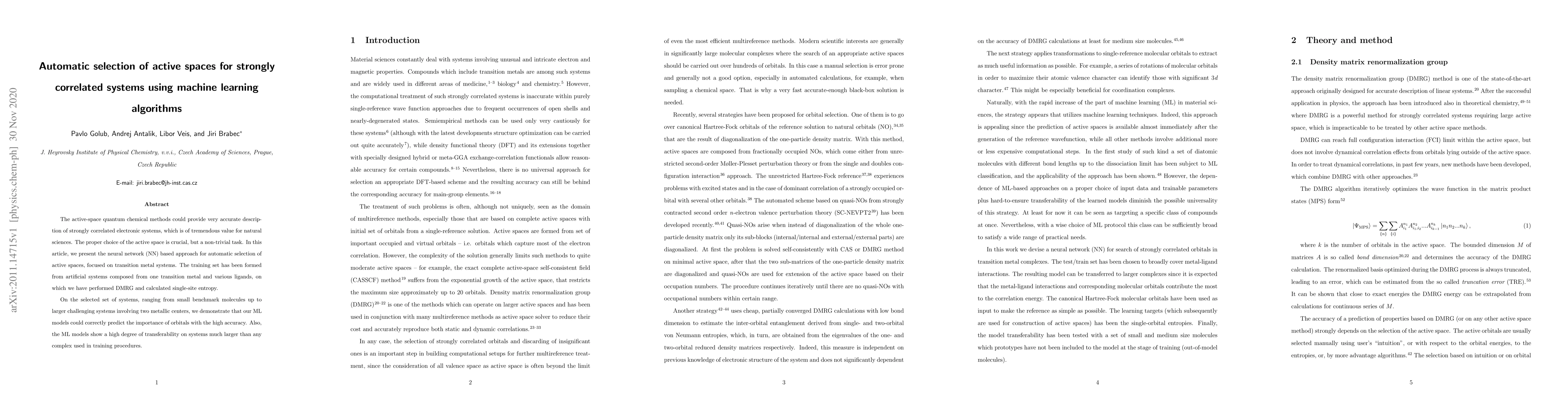 The paper introduces a machine learning-based method for automatic selection of active spaces in strongly correlated systems, specifically for transition metal complexes, using neural networks with high transferability.