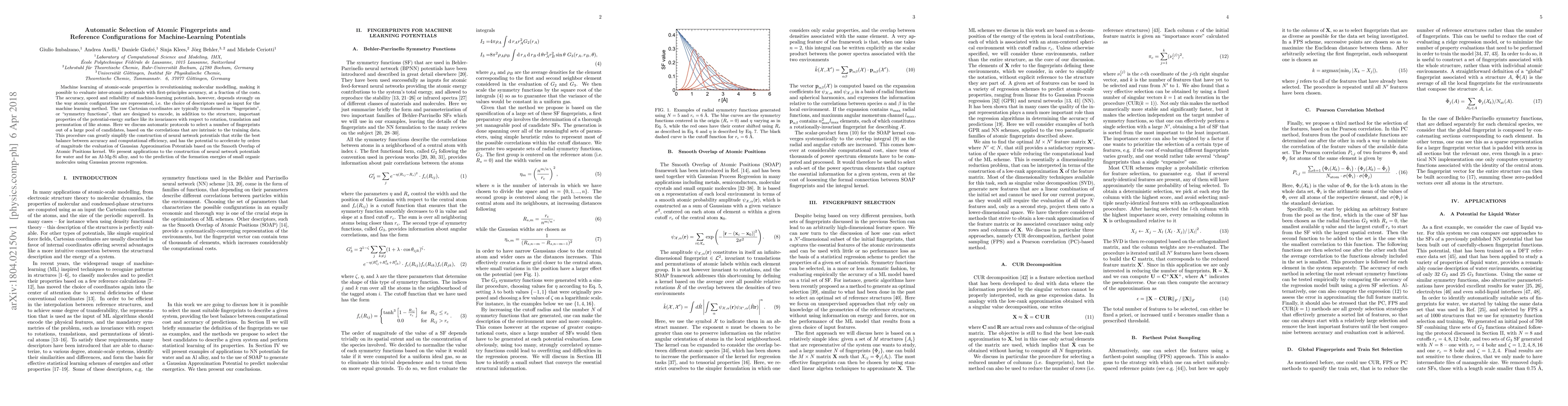 This paper proposes automatic methods for selecting optimal atomic fingerprints and reference configurations for machine-learning potentials, enhancing both accuracy and computational efficiency. The approach simplifies the construction of neural network potentials and accelerates the evaluation of Gaussian Approximation Potentials.