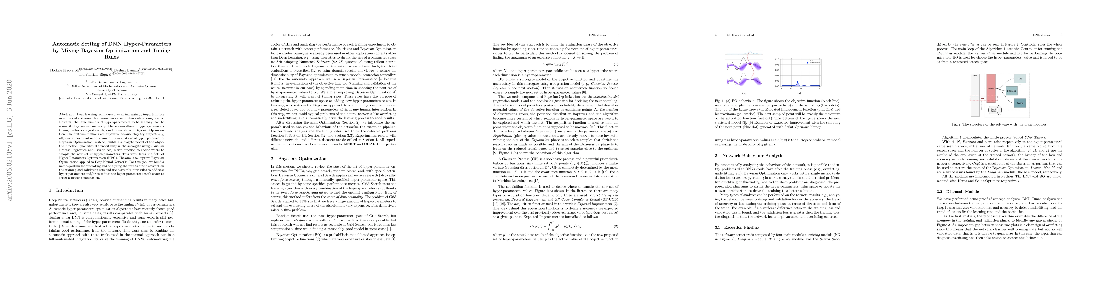 Deep learning techniques play an increasingly important role in industrial and research environments due to their outstanding results. However, the large number of hyper-parameters to be set may lead to errors if they are set manually. The state-of-the-art hyper-parameters tuning methods are grid search, random search, and Bayesian Optimization. The first two methods are expensive because they try, respectively, all possible combinations and random combinations of hyper-parameters. Bayesian Optimization, instead, builds a surrogate model of the objective function, quantifies the uncertainty in the surrogate using Gaussian Process Regression and uses an acquisition function to decide where to sample the new set of hyper-parameters. This work faces the field of Hyper-Parameters Optimization (HPO). The aim is to improve Bayesian Optimization applied to Deep Neural Networks. For this goal, we build a new algorithm for evaluating and analyzing the results of the network on the training and validation sets and use a set of tuning rules to add new hyper-parameters and/or to reduce the hyper-parameter search space to select a better combination.