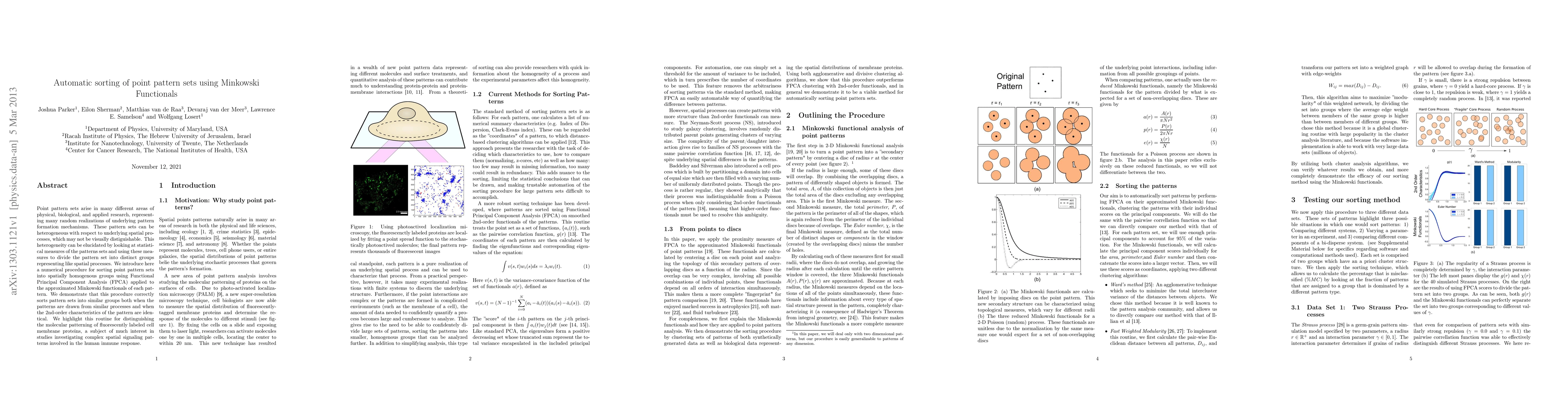 Researchers developed a method to automatically sort point pattern sets into similar groups based on their underlying spatial processes. This technique uses Functional Principal Component Analysis applied to Minkowski functionals, allowing for the identification of distinct patterns in heterogeneous data.