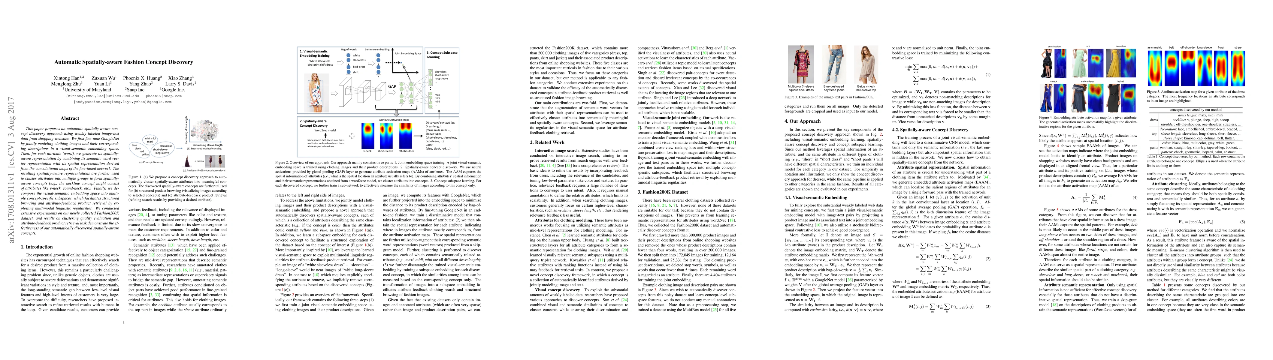 This paper introduces an automatic method for discovering spatially-aware fashion concepts using weakly labeled image-text data, employing fine-tuned GoogleNet to generate spatially-aware representations of attributes, which are then clustered into concepts for enhanced product retrieval. Experiments on a new Fashion200K dataset show the effectiveness of the proposed approach.