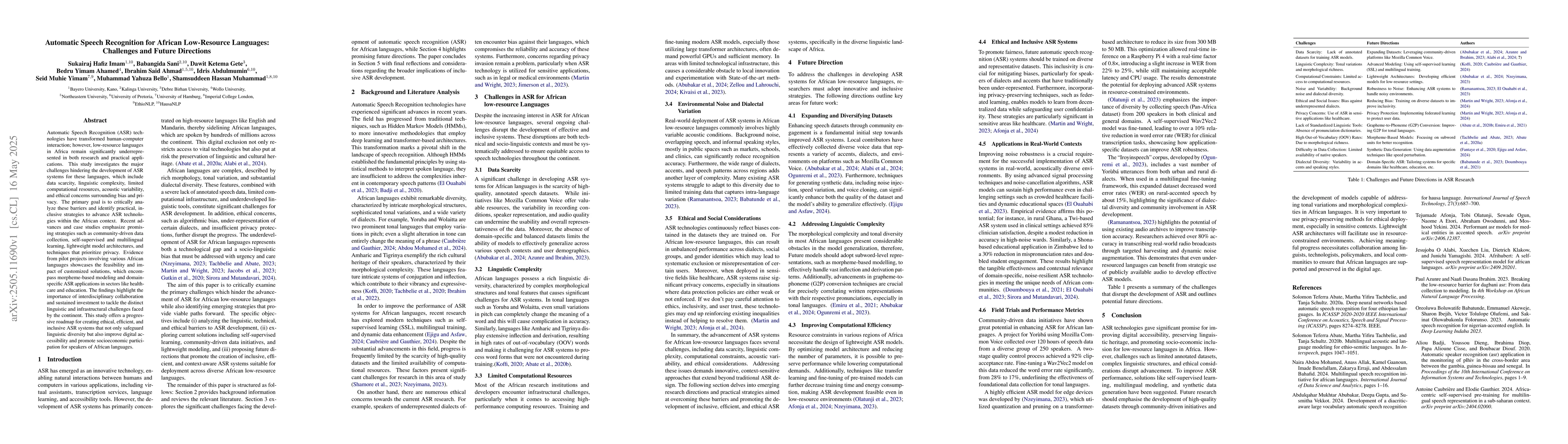 The paper presents a comprehensive analysis of ASR challenges in African low-resource languages and proposes innovative strategies like community-driven data collection, self-supervised learning, and privacy-preserving techniques.