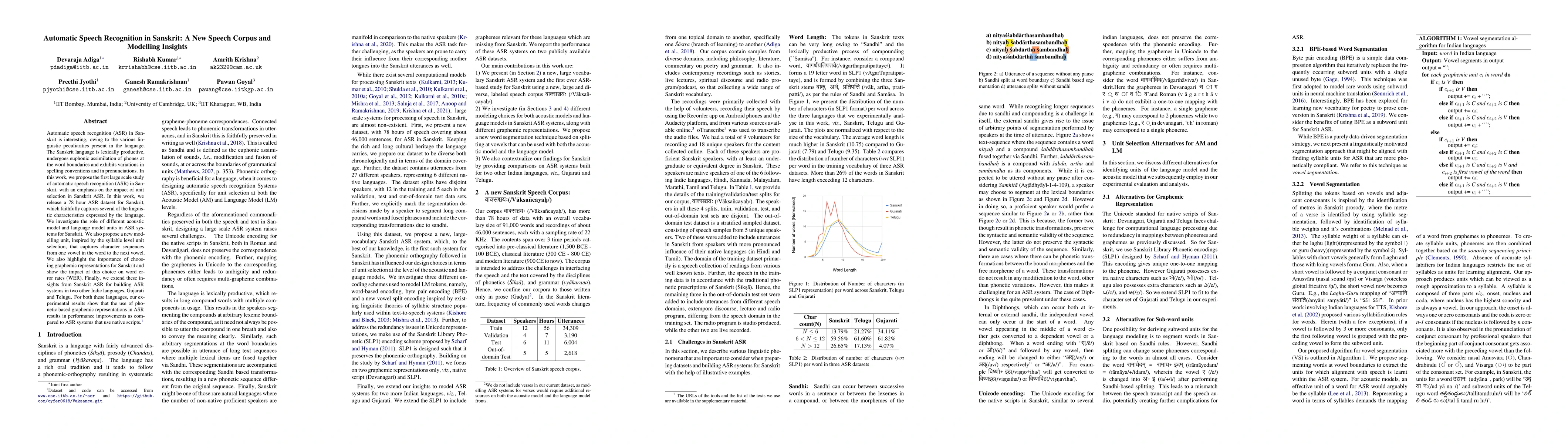 This paper presents a comprehensive study on automatic speech recognition (ASR) for Sanskrit, introducing a new 78-hour dataset and exploring unit selection modelling. It highlights the impact of graphemic representations on ASR performance and extends these insights to improve ASR systems for Gujarati and Telugu.