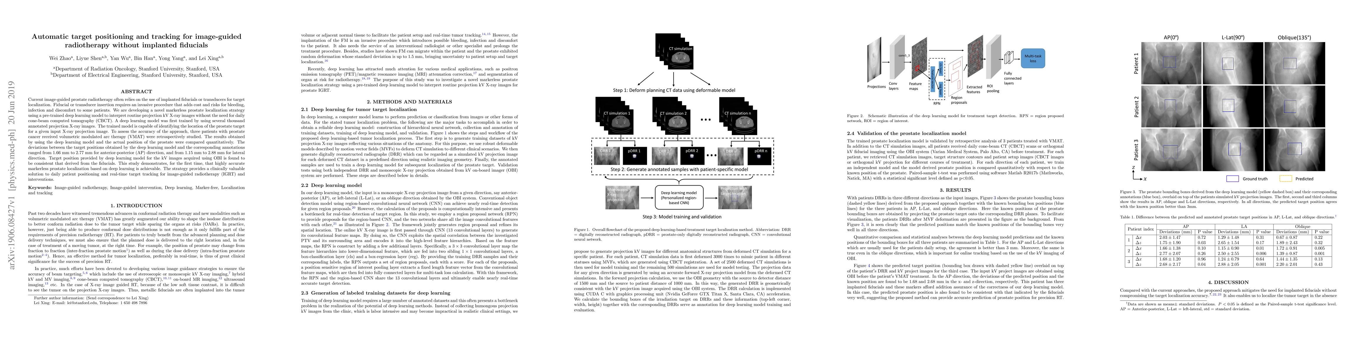 This study introduces a novel deep learning model for markerless prostate localization in image-guided radiotherapy, eliminating the need for invasive fiducials. The model, trained on annotated projection X-ray images, demonstrated accurate target positioning with deviations of 1.66-2.88 mm, offering a non-invasive, cost-effective alternative to current methods.