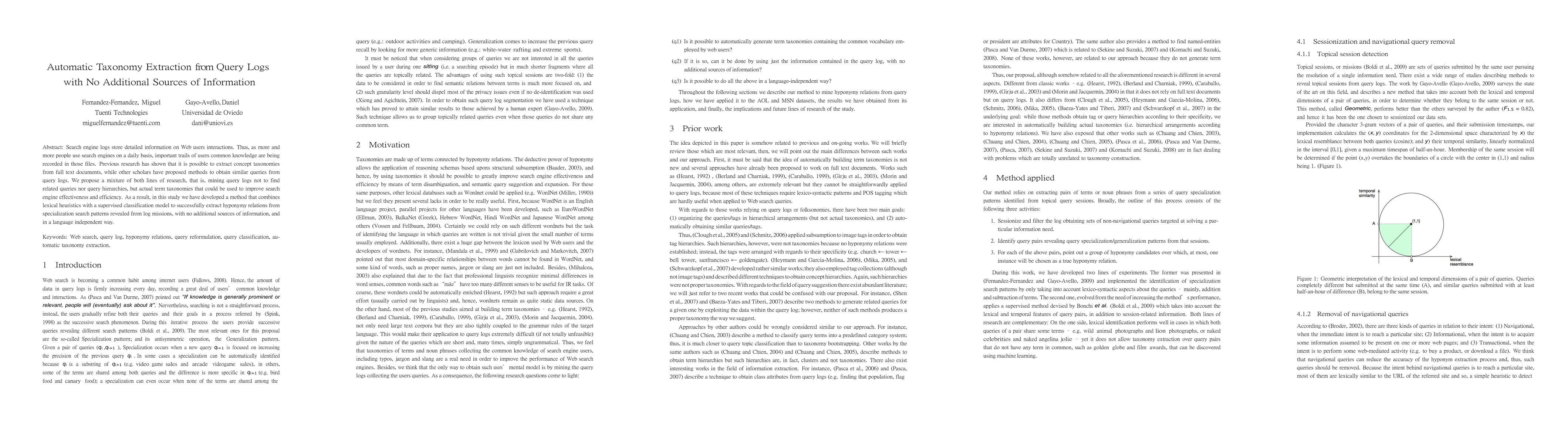 The development of a language-independent method for extracting hyponymy relations from query logs, capturing common user vocabulary and organizing it into taxonomies.