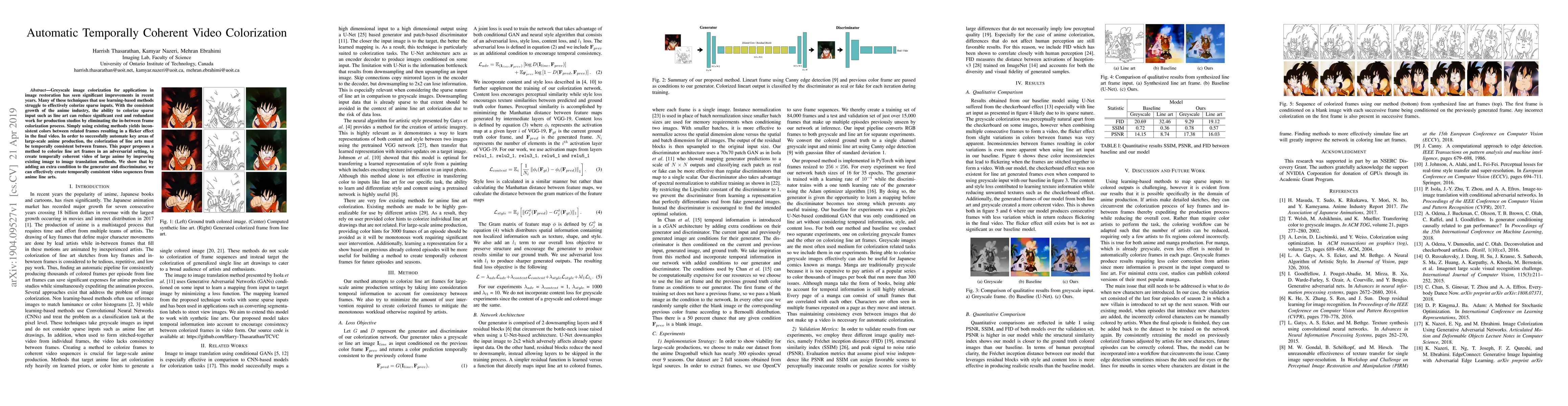 This paper proposes a method to colorize anime line art in an adversarial setting to produce temporally coherent videos, addressing the inconsistency issue in existing learning-based colorization techniques. The approach enhances image-to-image translation methods to ensure consistent color transitions between frames, benefiting large-scale anime production.