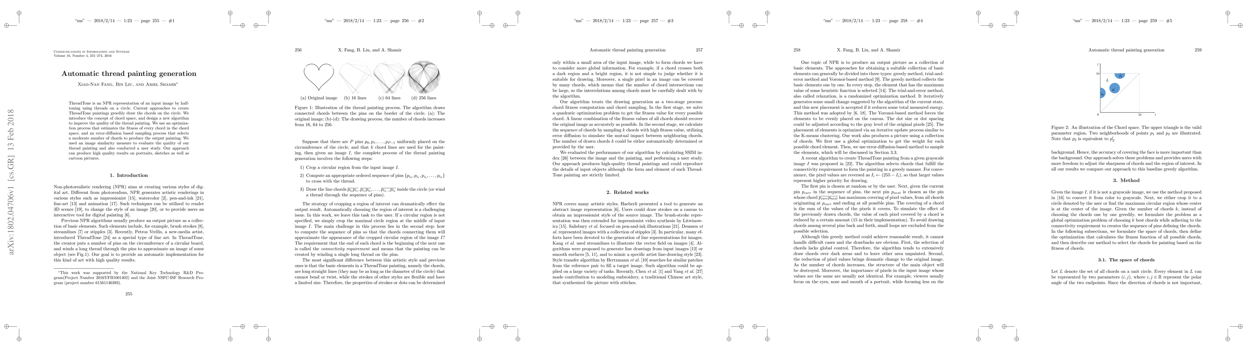 Researchers introduce a new algorithm for generating high-quality thread paintings using chord space optimization and error-diffusion sampling, achieving impressive results on portraits, sketches, and cartoons.