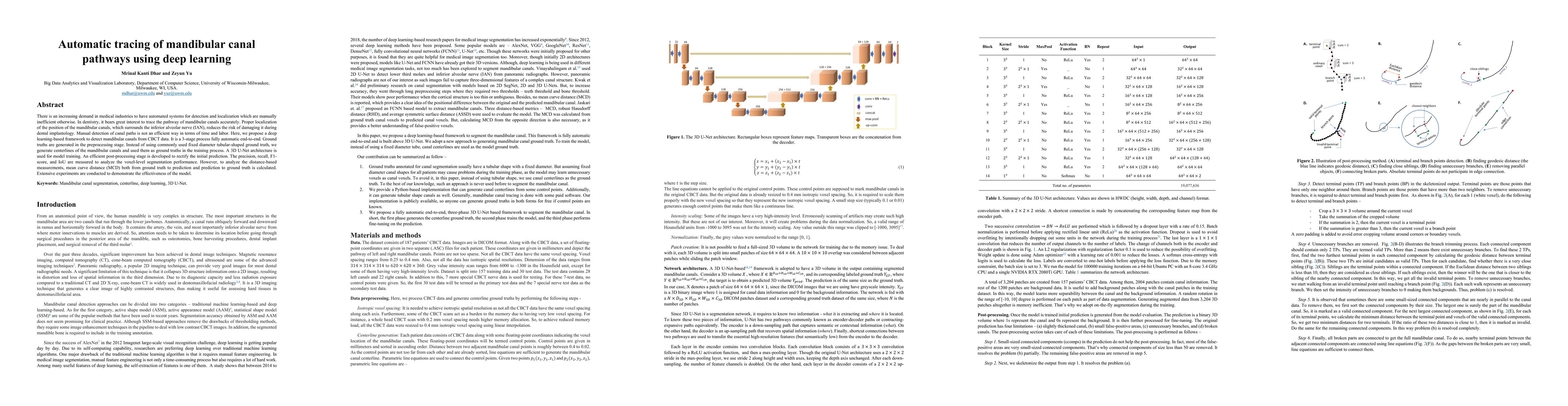 The paper introduces an efficient 3D U-Net architecture with a custom post-processing method for accurate mandibular canal segmentation using centerline ground truths.