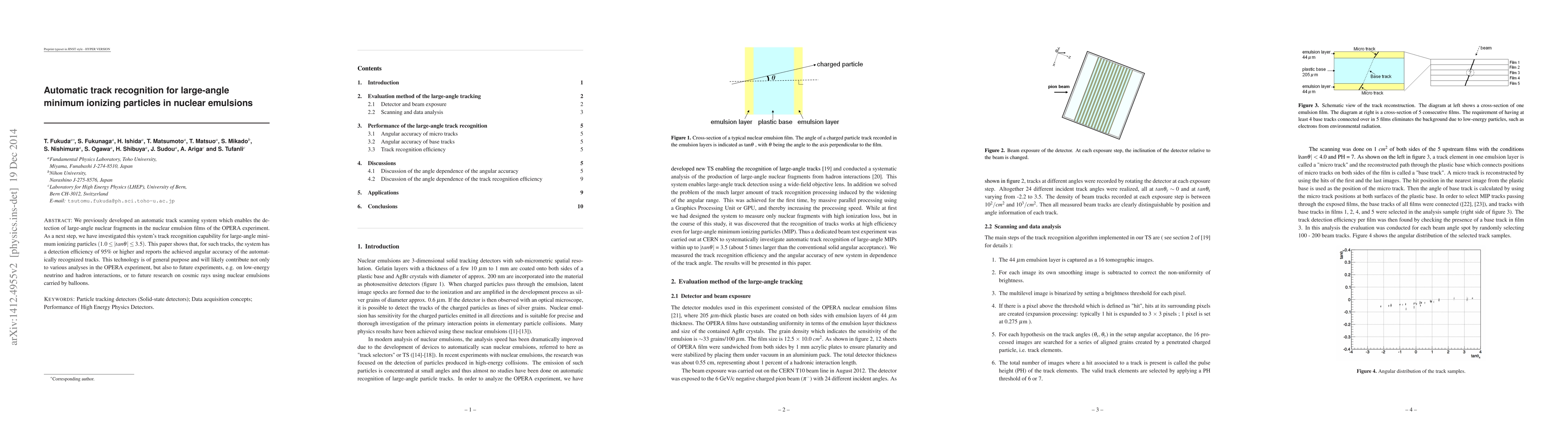 We previously developed an automatic track scanning system which enables the detection of large-angle nuclear fragments in the nuclear emulsion films of the OPERA experiment. As a next step, we have investigated this system's track recognition capability for large-angle minimum ionizing particles $(1.0 \leq |tan \theta| \leq 3.5)$. This paper shows that, for such tracks, the system has a detection efficiency of 95$\%$ or higher and reports the achieved angular accuracy of the automatically recognized tracks. This technology is of general purpose and will likely contribute not only to various analyses in the OPERA experiment, but also to future experiments, e.g. on low-energy neutrino and hadron interactions, or to future research on cosmic rays using nuclear emulsions carried by balloons.