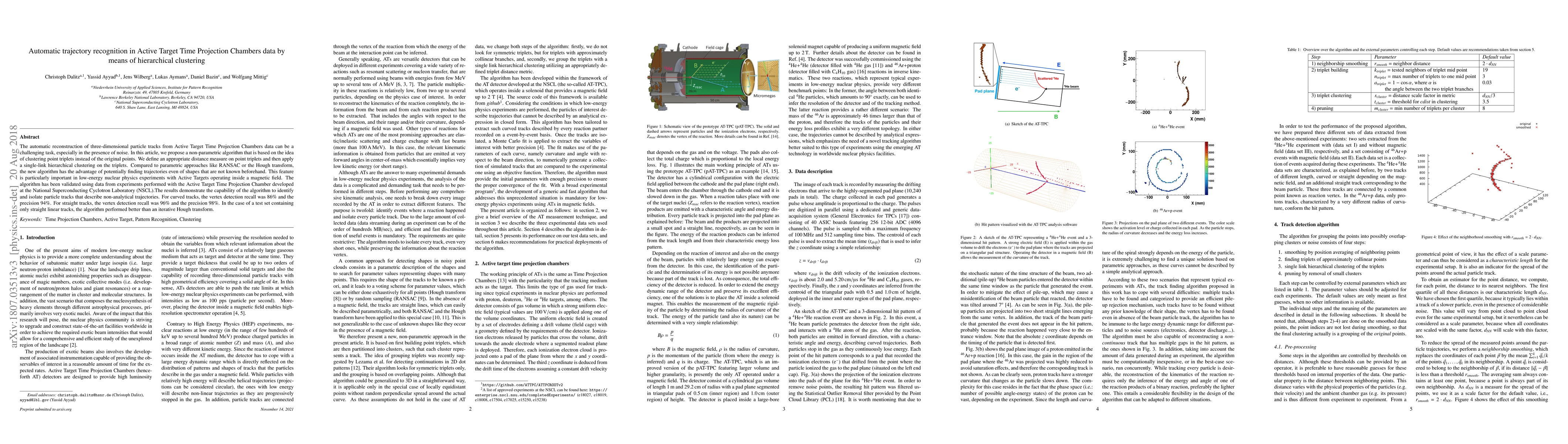 A new algorithm using hierarchical clustering to recognize trajectories from Active Target Time Projection Chambers data shows high accuracy in identifying curved and straight tracks, outperforming traditional methods in some cases.