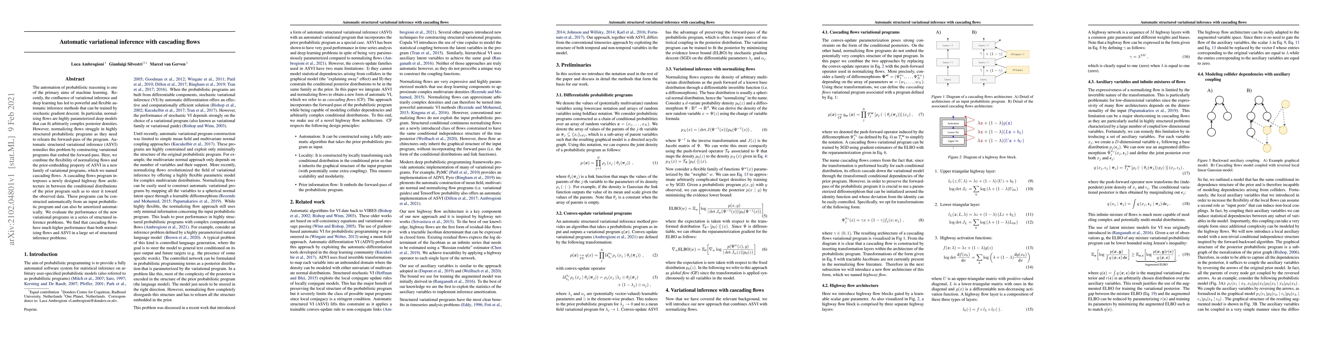 This paper introduces cascading flows, a novel variational inference method that combines the flexibility of normalizing flows with the structured prior-embedding property of automatic structured variational inference (ASVI). The proposed method outperforms both normalizing flows and ASVI in structured inference tasks, demonstrating superior performance in fitting complex posterior densities.