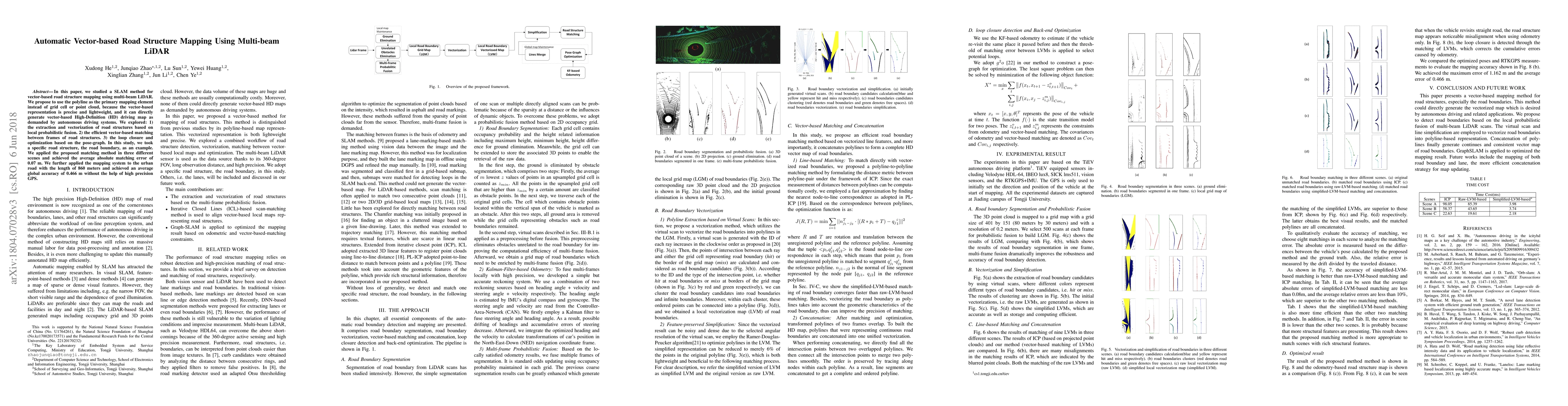 This paper proposes a SLAM method for precise vector-based road structure mapping using multi-beam LiDAR, focusing on polyline representation for HD driving maps. The study demonstrates effective vectorization, matching, and loop closure techniques, achieving an average global accuracy of 0.466 m in urban environments.
