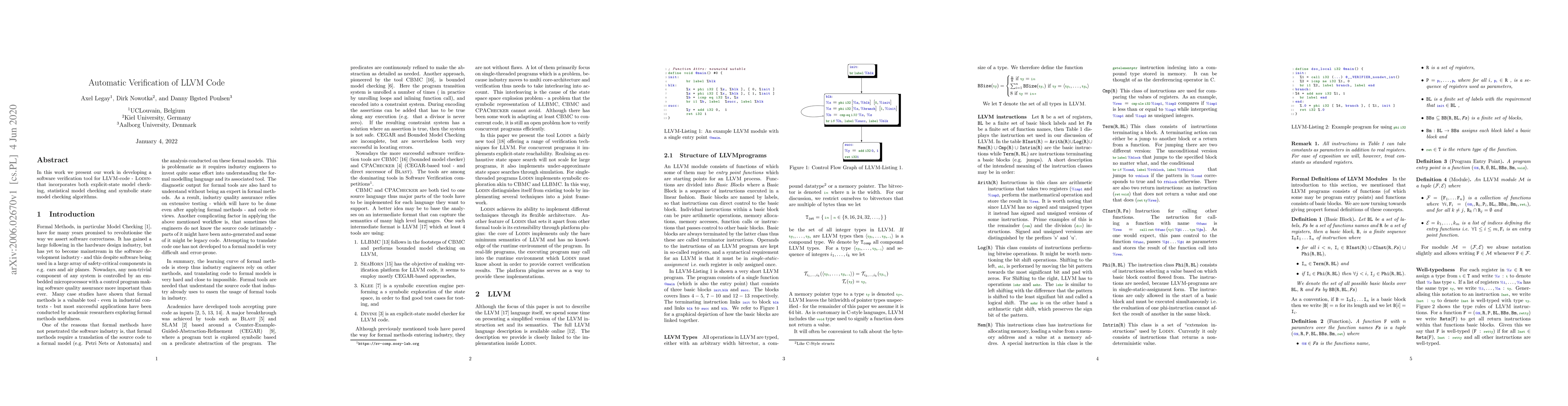 Summary: Lodin is a new software verification tool for LLVM code that integrates explicit-state, statistical, and symbolic state model checking algorithms to ensure code correctness automatically. The tool aims to enhance the reliability of LLVM-based applications through comprehensive verification techniques.