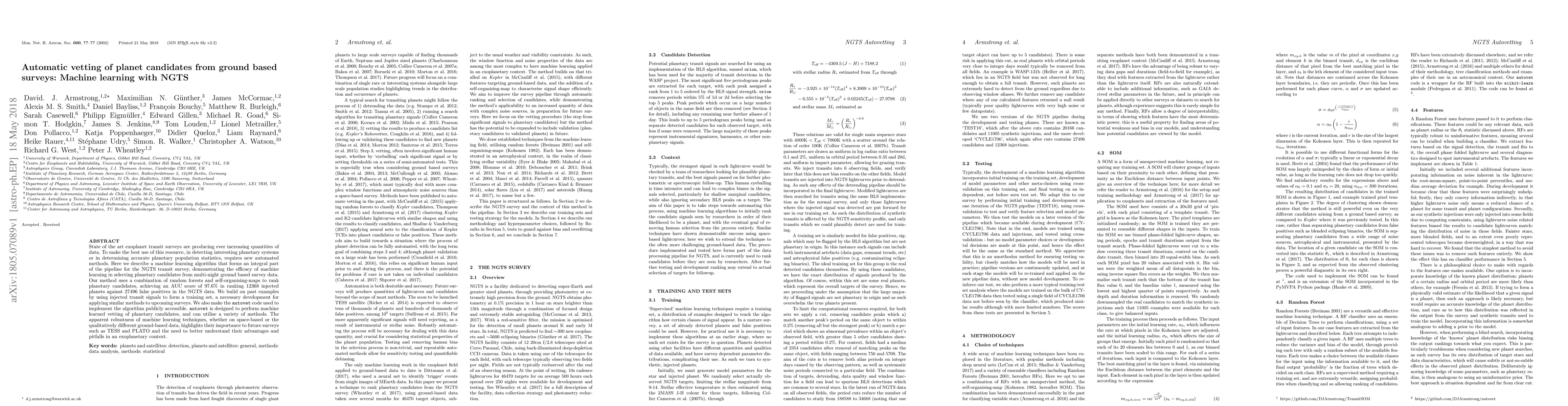 This paper presents a machine learning algorithm for automatically vetting planet candidates from ground-based surveys, specifically the NGTS transit survey. The method combines random forests and self-organizing maps to rank candidates, achieving a high AUC score of 97.6% and demonstrating the potential of machine learning for future exoplanet surveys like TESS and PLATO.
