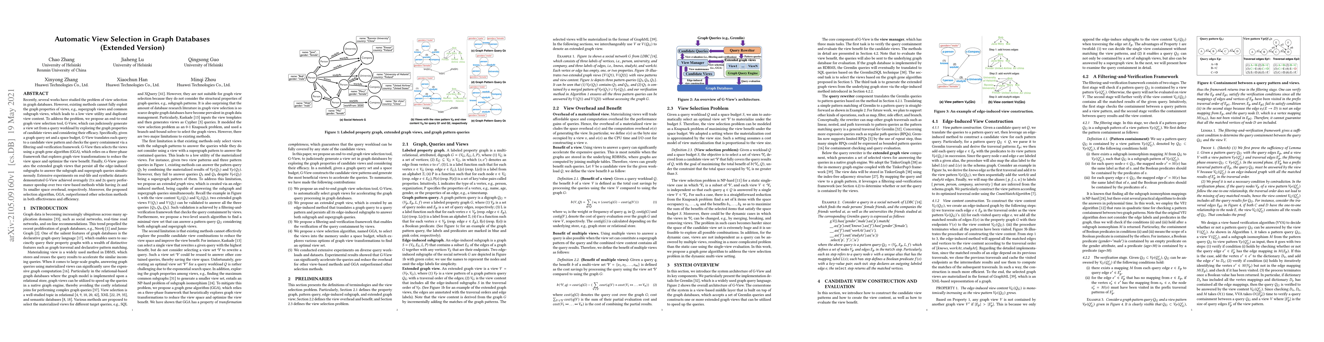The paper proposes G-View, an automatic tool for selecting optimal graph views in graph databases, leveraging graph properties to enhance view utility and reduce redundancy. G-View uses a graph gene algorithm to generate and select views, achieving significant performance improvements and lower space overhead compared to existing methods.