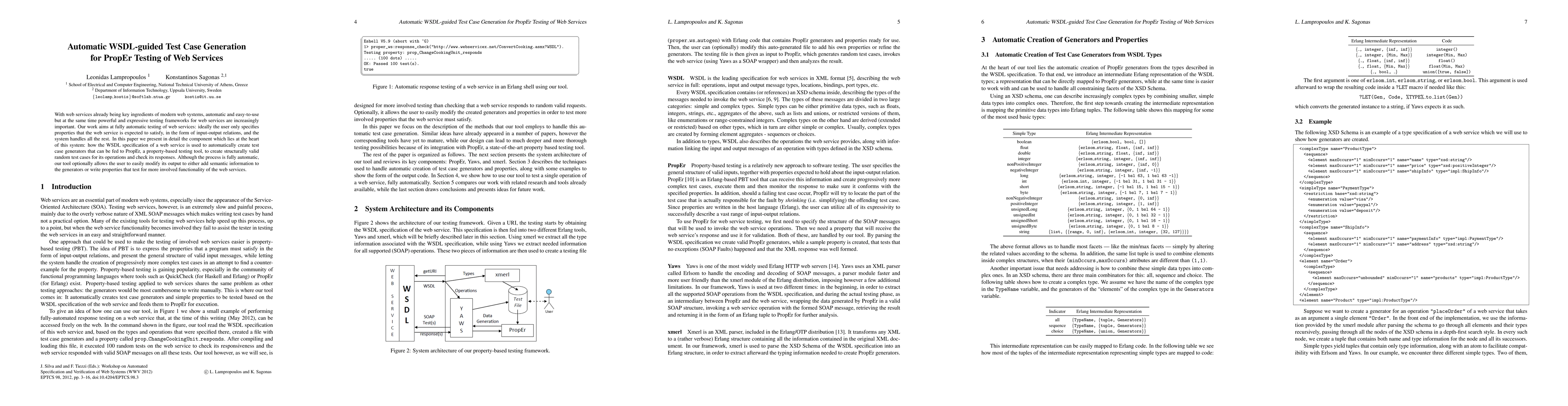 This paper introduces an automatic system for generating test cases for web services based on their WSDL specifications, which are then used with PropEr for property-based testing. The tool allows users to specify desired properties and optionally modify the generated test cases for more complex testing scenarios.
