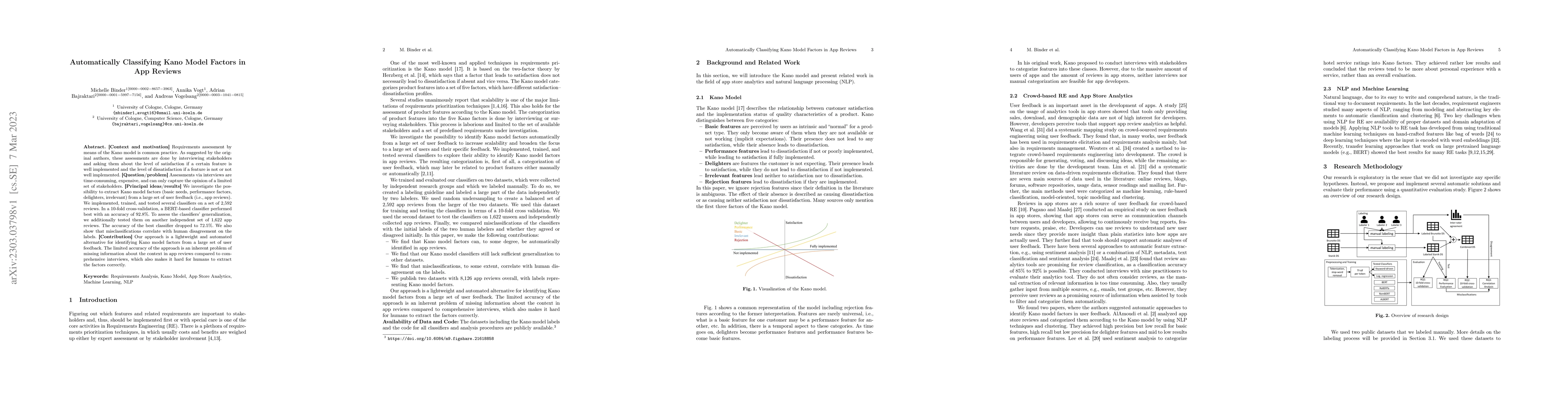 This paper investigates the automatic classification of Kano model factors (basic needs, performance factors, and delighters) from app reviews using machine learning. A BERT-based classifier achieved high accuracy on a primary dataset but showed reduced performance on a separate test set, highlighting the inherent challenges of extracting context-specific information from user feedback compared to direct interviews.