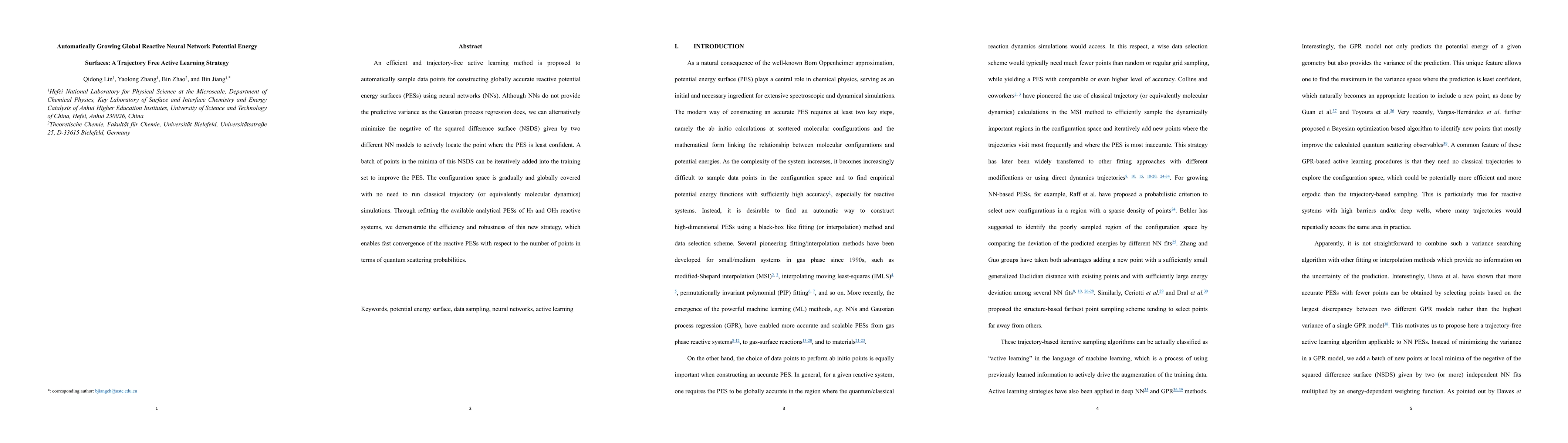 This paper proposes a trajectory-free active learning method to construct accurate reactive potential energy surfaces using neural networks by iteratively sampling data points where the network is least confident. The method demonstrates efficient convergence for H3 and OH3 systems without requiring classical trajectory simulations.