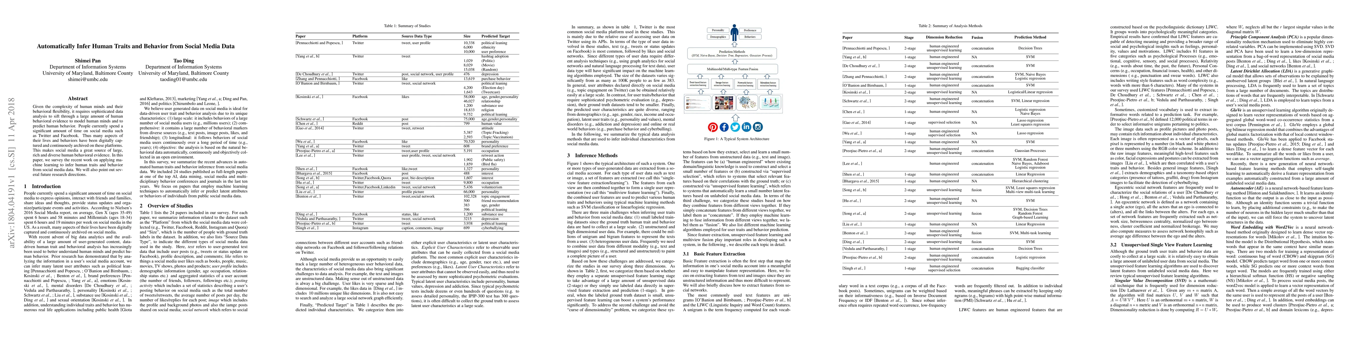 Given the complexity of human minds and their behavioral flexibility, it requires sophisticated data analysis to sift through a large amount of human behavioral evidence to model human minds and to predict human behavior. People currently spend a significant amount of time on social media such as Twitter and Facebook. Thus many aspects of their lives and behaviors have been digitally captured and continuously archived on these platforms. This makes social media a great source of large, rich and diverse human behavioral evidence. In this paper, we survey the recent work on applying machine learning to infer human traits and behavior from social media data. We will also point out several future research directions.