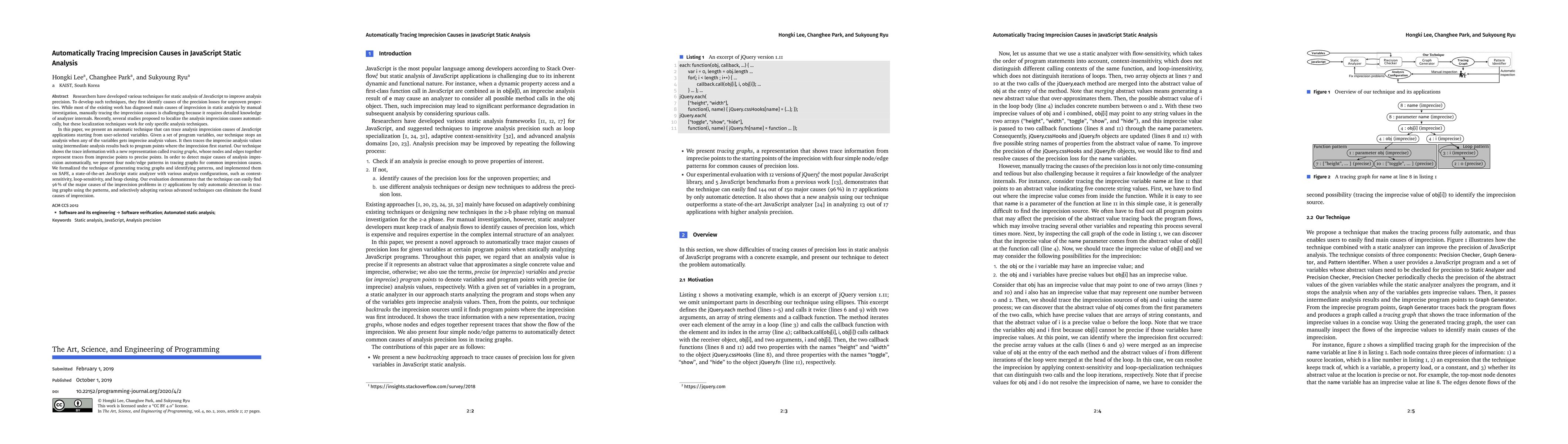 This paper introduces an automatic technique for tracing imprecision causes in JavaScript static analysis, starting from user-selected variables. It employs tracing graphs to represent and identify common imprecision patterns, achieving 96% detection of major imprecision causes in 17 applications using the proposed method.