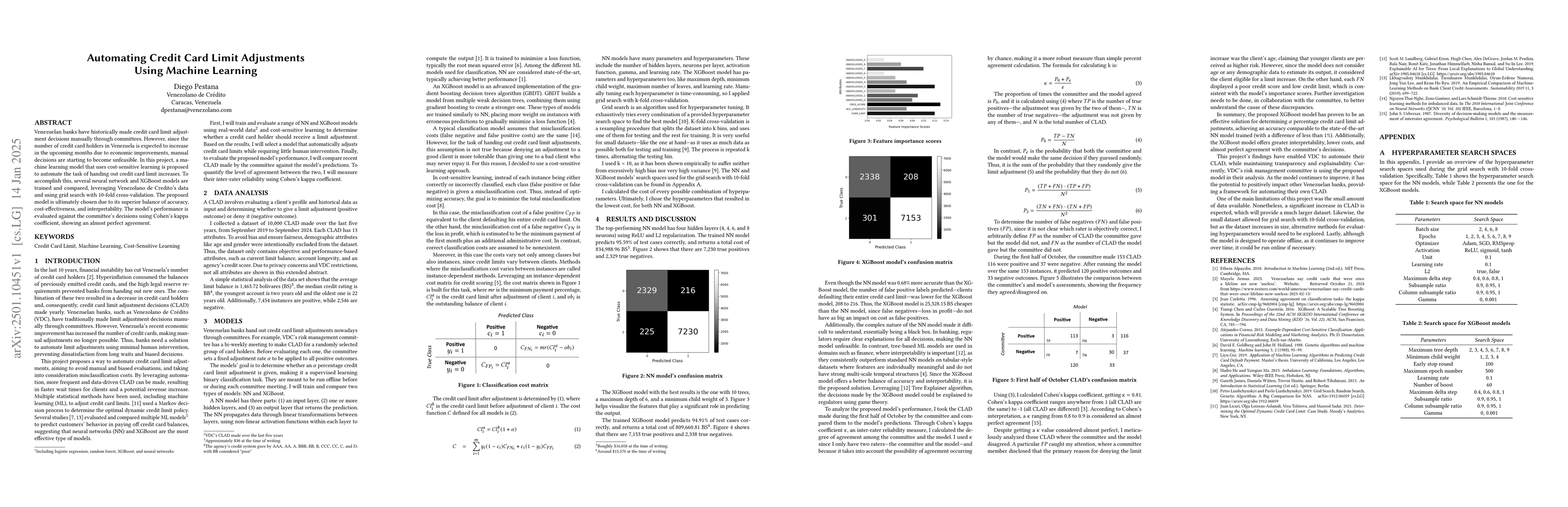 This paper proposes a machine learning model to automate credit card limit adjustments for Venezuelan banks, replacing the current manual process. Several neural network and XGBoost models were trained and compared, showing the chosen model offers a superior balance of accuracy, cost-effectiveness, and interpretability, with nearly perfect agreement compared to committee decisions.