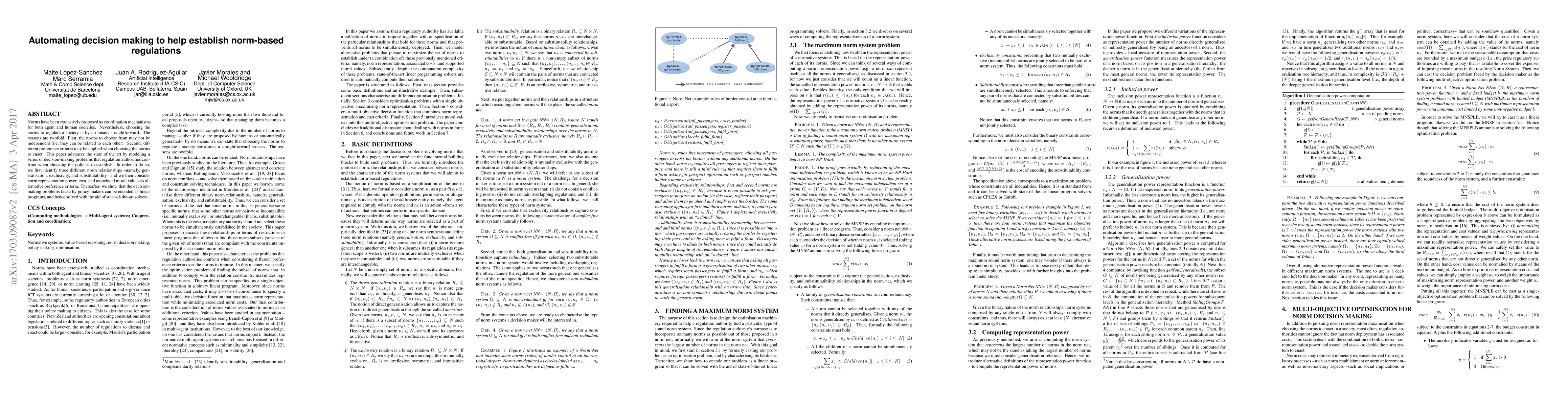 Norms have been extensively proposed as coordination mechanisms for both agent and human societies. Nevertheless, choosing the norms to regulate a society is by no means straightforward. The reasons are twofold. First, the norms to choose from may not be independent (i.e, they can be related to each other). Second, different preference criteria may be applied when choosing the norms to enact. This paper advances the state of the art by modeling a series of decision-making problems that regulation authorities confront when choosing the policies to establish. In order to do so, we first identify three different norm relationships -namely, generalisation, exclusivity, and substitutability- and we then consider norm representation power, cost, and associated moral values as alternative preference criteria. Thereafter, we show that the decision-making problems faced by policy makers can be encoded as linear programs, and hence solved with the aid of state-of-the-art solvers.