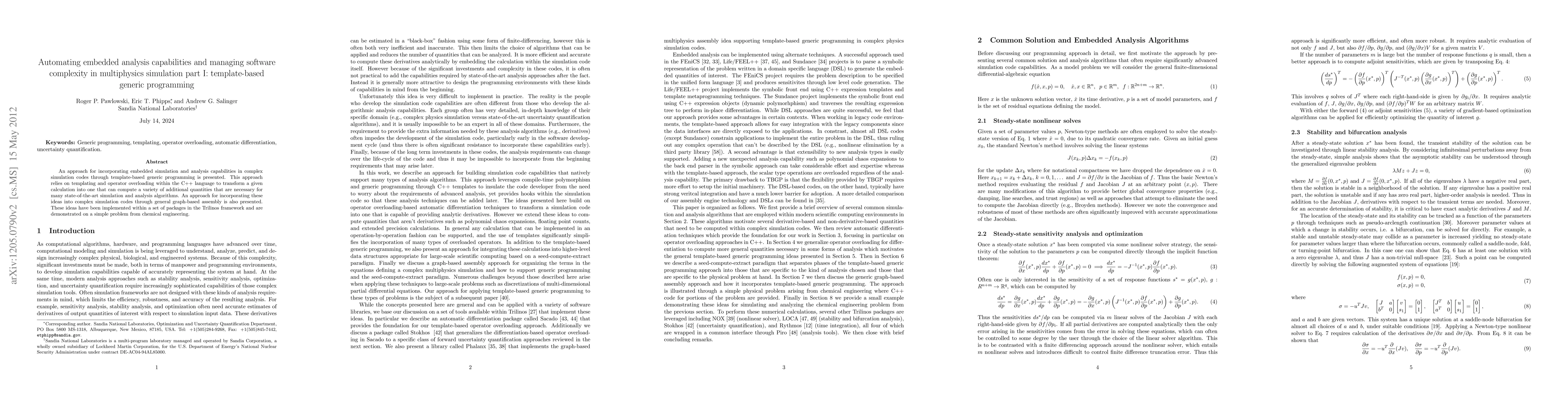 This paper introduces a template-based generic programming method in C++ to automate embedded analysis in complex simulation codes, enabling computation of additional quantities necessary for advanced simulation algorithms. The approach is implemented in the Trilinos framework and demonstrated through a chemical engineering problem.