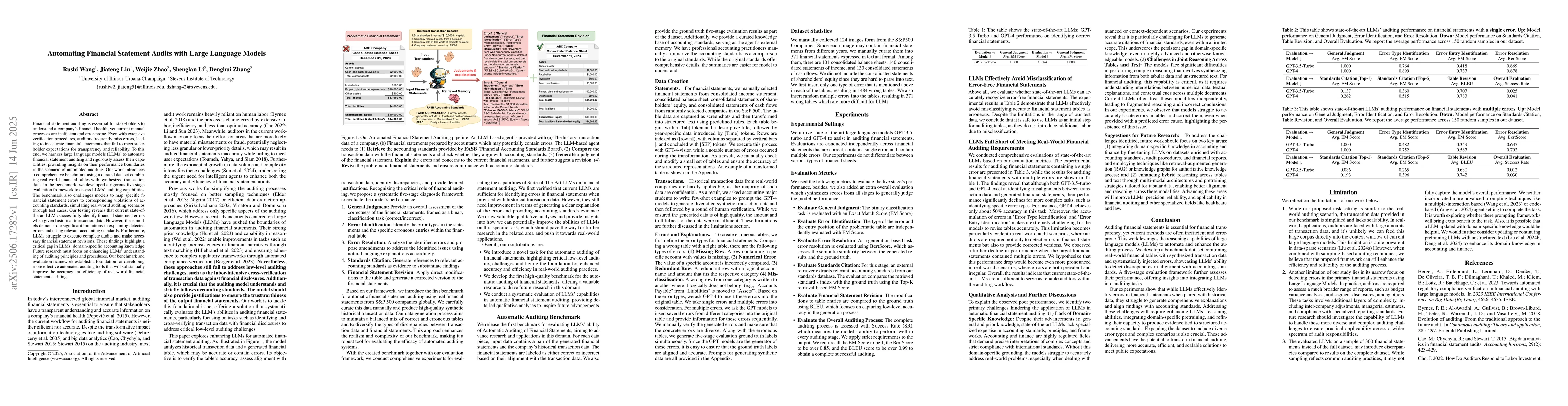 This research uses large language models (LLMs) to automate financial statement audits, finding they can identify errors but struggle with explaining them, citing standards, and making revisions, highlighting the need for improved accounting knowledge in LLMs to enhance audit accuracy and efficiency.