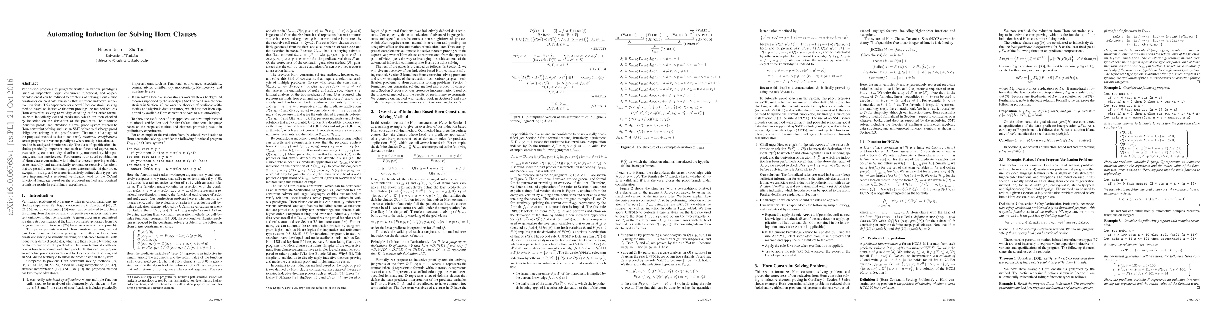 This paper introduces a novel method for solving Horn clause constraints using inductive theorem proving to automate the verification of program specifications across various paradigms. The method leverages an SMT solver to discharge proof obligations and can verify important relational properties, including functional equivalence and non-interference.