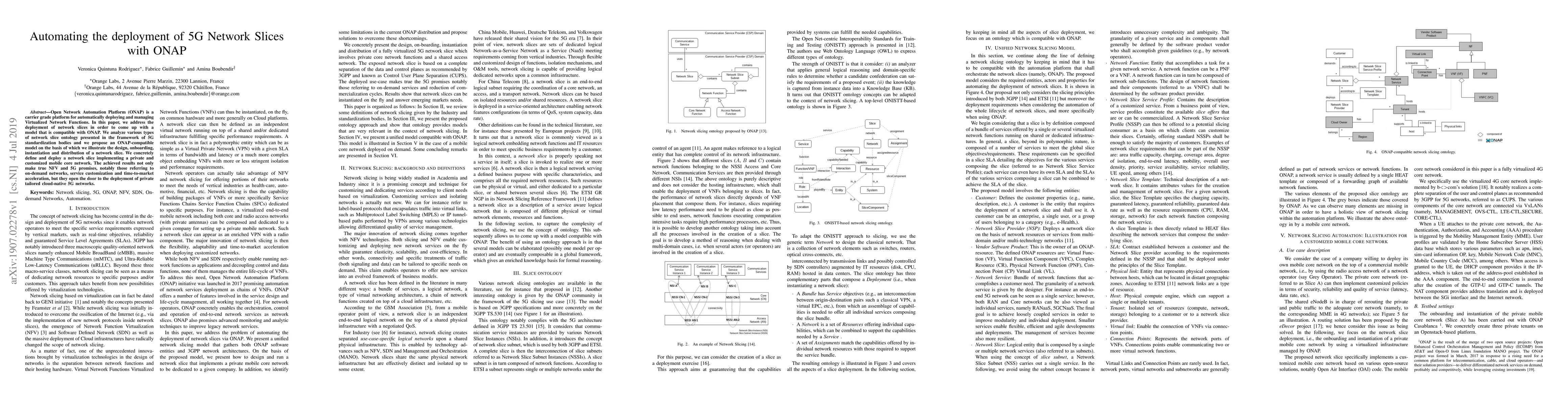 This paper proposes an ONAP-compatible model for automating the deployment of 5G network slices, illustrating the design, onboarding, instantiation, and distribution process, and successfully deploying a private mobile core network, thus accelerating time-to-market and enabling customized cloud-native 5G networks.