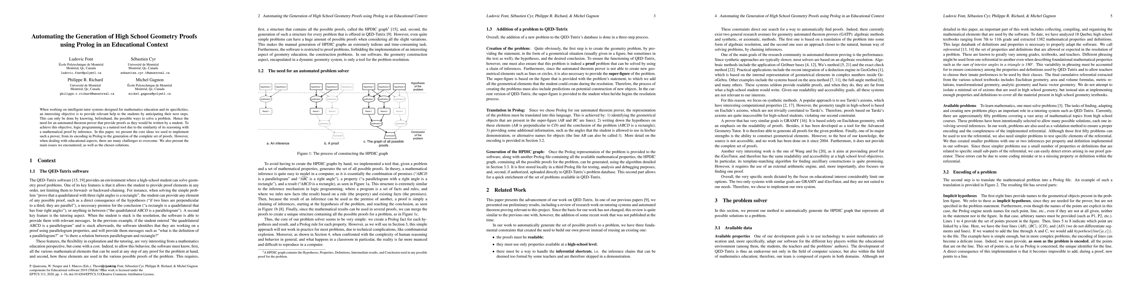 When working on intelligent tutor systems designed for mathematics education and its specificities, an interesting objective is to provide relevant help to the students by anticipating their next steps. This can only be done by knowing, beforehand, the possible ways to solve a problem. Hence the need for an automated theorem prover that provide proofs as they would be written by a student. To achieve this objective, logic programming is a natural tool due to the similarity of its reasoning with a mathematical proof by inference. In this paper, we present the core ideas we used to implement such a prover, from its encoding in Prolog to the generation of the complete set of proofs. However, when dealing with educational aspects, there are many challenges to overcome. We also present the main issues we encountered, as well as the chosen solutions.