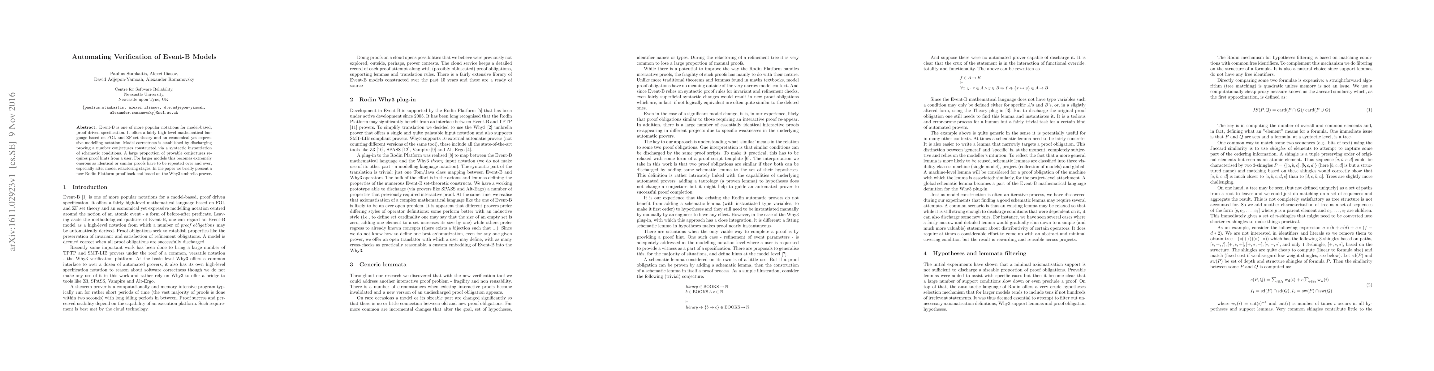 Event-B is one of more popular notations for model-based, proof driven specification. It offers a fairly high-level mathematical lan- guage based on FOL and ZF set theory and an economical yet expres- sive modelling notation. Model correctness is established by discharging proving a number conjectures constructed via a syntactic instantiation of schematic conditions. A large proportion of provable conjectures re- quires proof hints from a user. For larger models this becomes extremely onerous as identical or similar proofs have to be repeated over and over, especially after model refactoring stages. In the paper we briefly present a new Rodin Platform proof back-end based on the Why3 umbrella prover.
