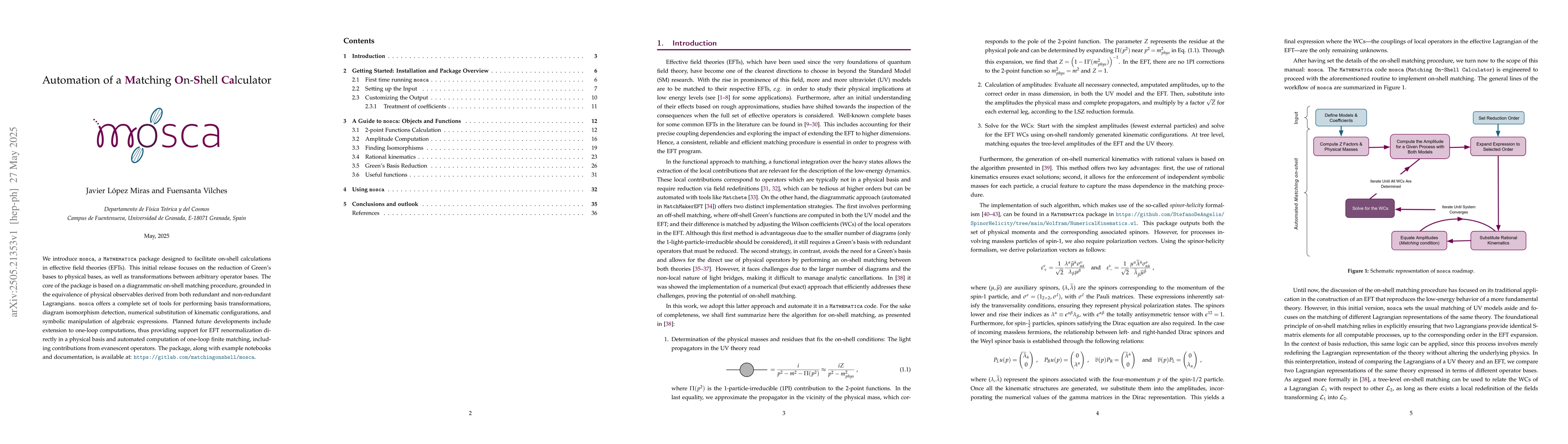 The main technical contribution is the $ exttt{mosca}$ Mathematica package, which automates on-shell matching procedures in EFTs, offering a suite of tools for basis transformations and algebraic manipulations.
