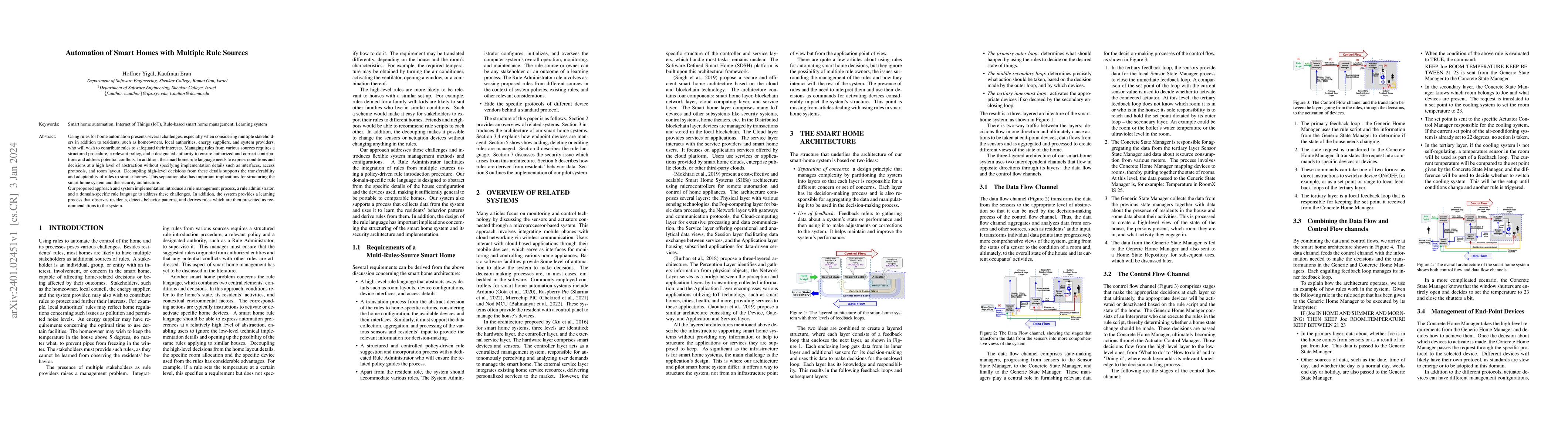 This paper proposes a rule management process and system to automate smart homes, addressing challenges from multiple stakeholders by introducing a rule administrator, a domain-specific rule language, and a learning mechanism that observes residents and recommends behavior-based rules. The approach aims to decouple high-level rules from implementation details for better adaptability and security.