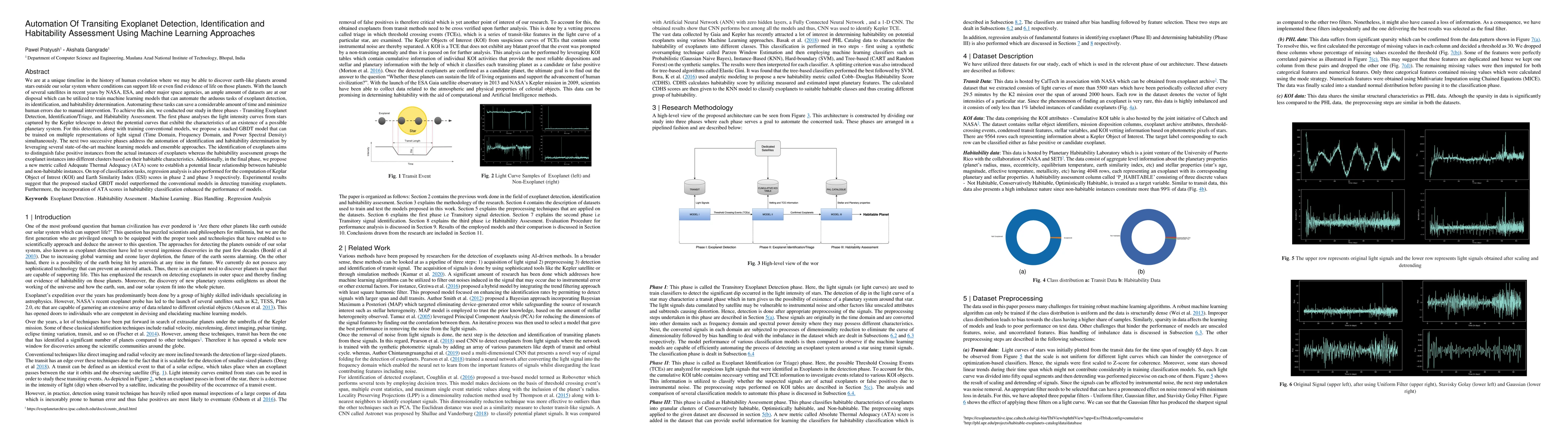 This paper explores the automation of transiting exoplanet detection, identification, and habitability assessment using machine learning. It proposes a stacked Gradient Boosting Decision Tree (GBDT) model for detecting exoplanets from light intensity curves and employs advanced machine learning techniques for identification and habitability classification, introducing a new Adequate Thermal Adequacy (ATA) score to improve classification performance.
