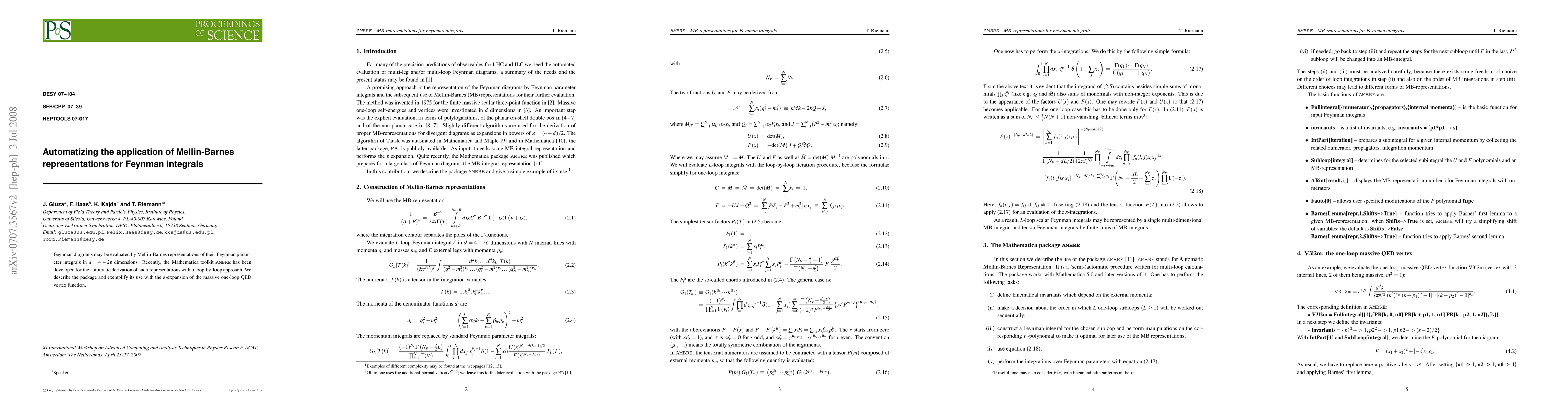 The development of the AMBRE Mathematica package, which automates the derivation of MB-representations for Feynman integrals, streamlining multi-loop calculations in particle physics.