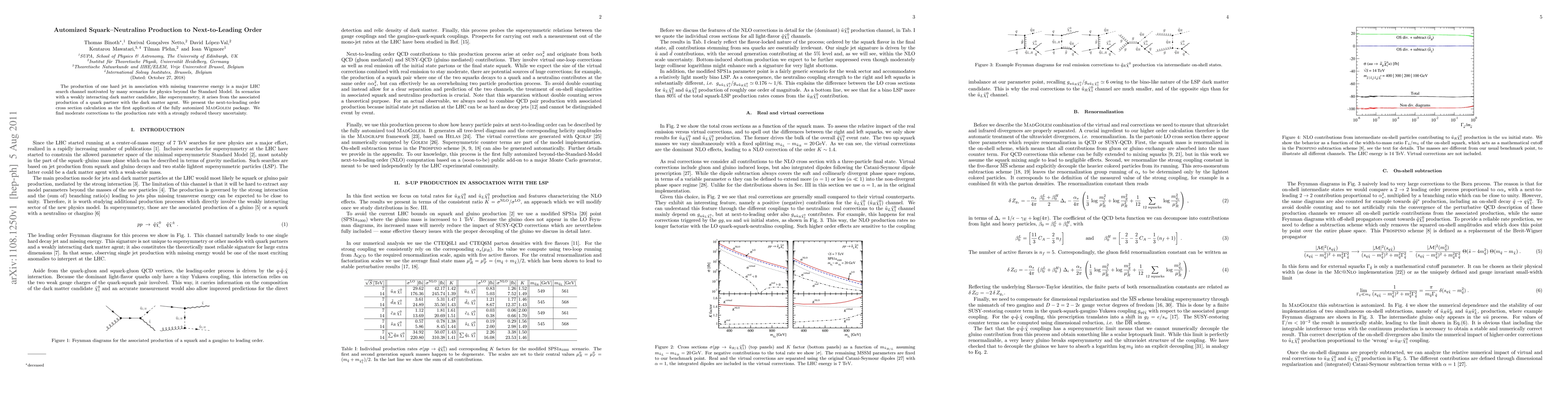 The production of one hard jet in association with missing transverse energy is a major LHC search channel motivated by many scenarios for physics beyond the Standard Model. In scenarios with a weakly interacting dark matter candidate, like supersymmetry, it arises from the associated production of a quark partner with the dark matter agent. We present the next-to-leading order cross section calculation as the first application of the fully automized MadGolem package. We find moderate corrections to the production rate with a strongly reduced theory uncertainty.
