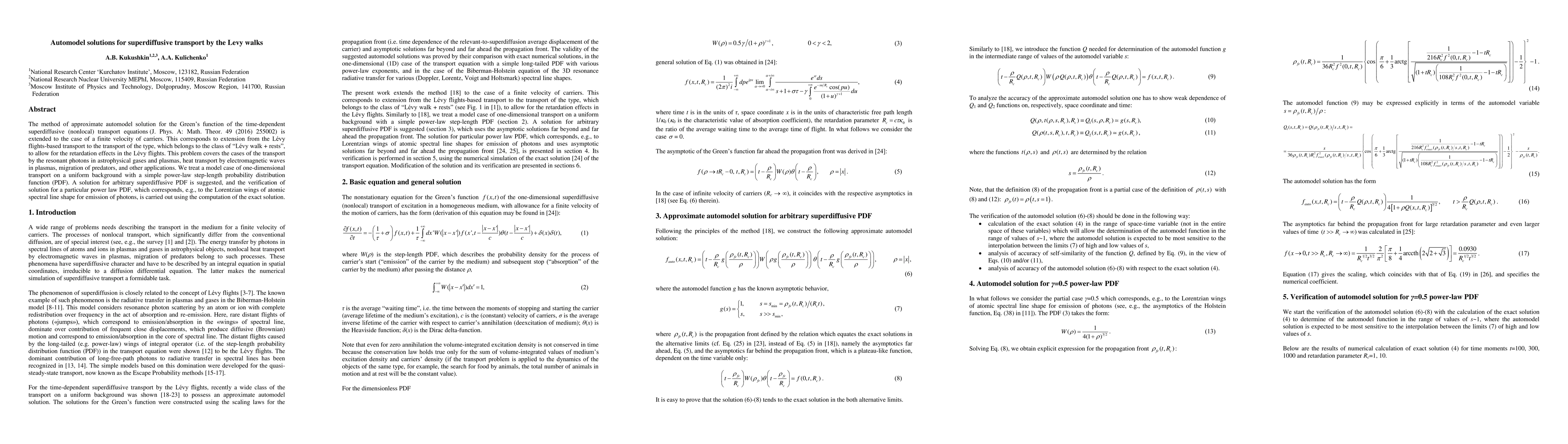 The method of approximate automodel solution for the Green's function of the time-dependent superdiffusive (nonlocal) transport equations (J. Phys. A: Math. Theor. 49 (2016) 255002) is extended to the case of a finite velocity of carriers. This corresponds to extension from the L\'evy flights-based transport to the transport of the type, which belongs to the class of "L\'evy walk + rests", to allow for the retardation effects in the L\'evy flights. This problem covers the cases of the transport by the resonant photons in astrophysical gases and plasmas, heat transport by electromagnetic waves in plasmas, migration of predators, and other applications. We treat a model case of one-dimensional transport on a uniform background with a simple power-law step-length probability distribution function (PDF). A solution for arbitrary superdiffusive PDF is suggested, and the verification of solution for a particular power law PDF, which corresponds, e.g., to the Lorentzian wings of atomic spectral line shape for emission of photons, is carried out using the computation of the exact solution.
