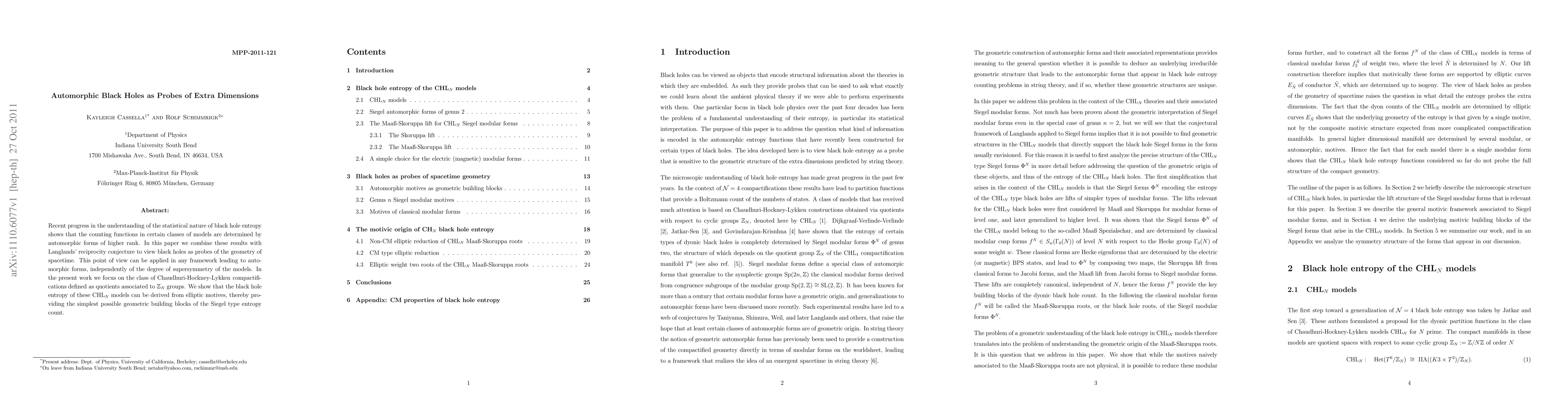 Researchers use black holes as probes to study extra dimensions in spacetime, finding that their entropy can be calculated using elliptic motives, providing a geometric understanding of the Siegel type entropy count.