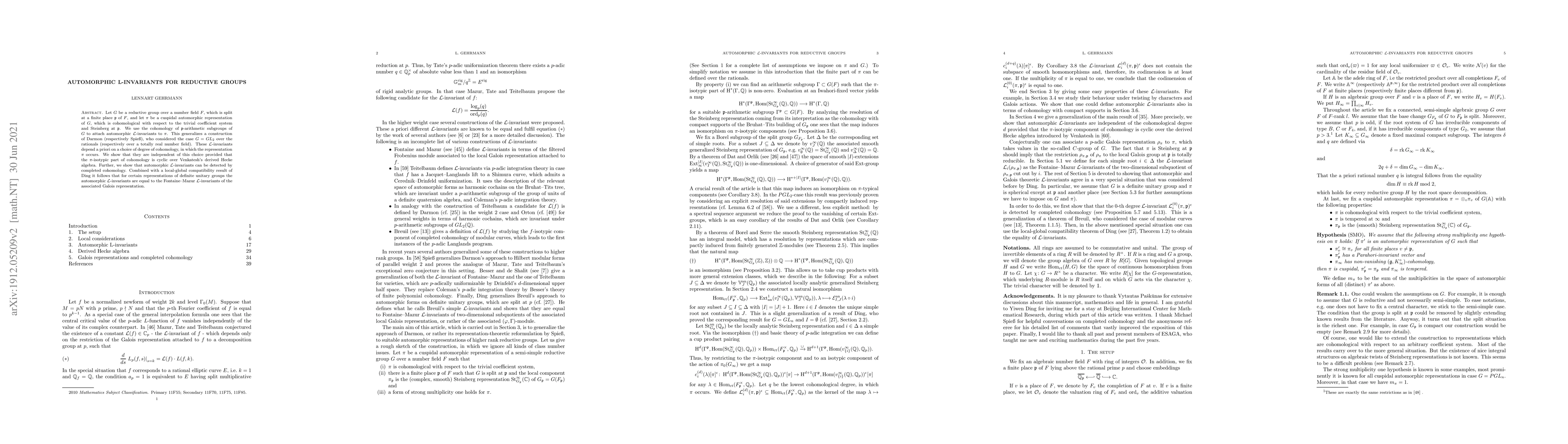 This paper constructs automorphic L-invariants for reductive groups using the cohomology of arithmetic subgroups, generalizing prior work on GL₂. It demonstrates independence of these invariants from the choice of cohomology degree under certain conditions and shows their detectability via completed cohomology.