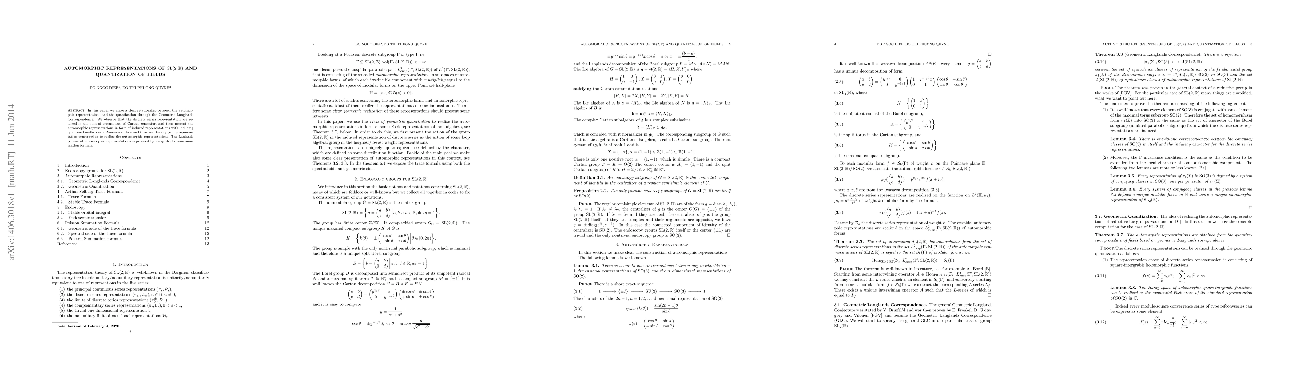 Researchers establish a connection between automorphic representations of SL(2,R) and quantization using the Geometric Langlands Correspondence, enabling precise representation of discrete series in induced representations.