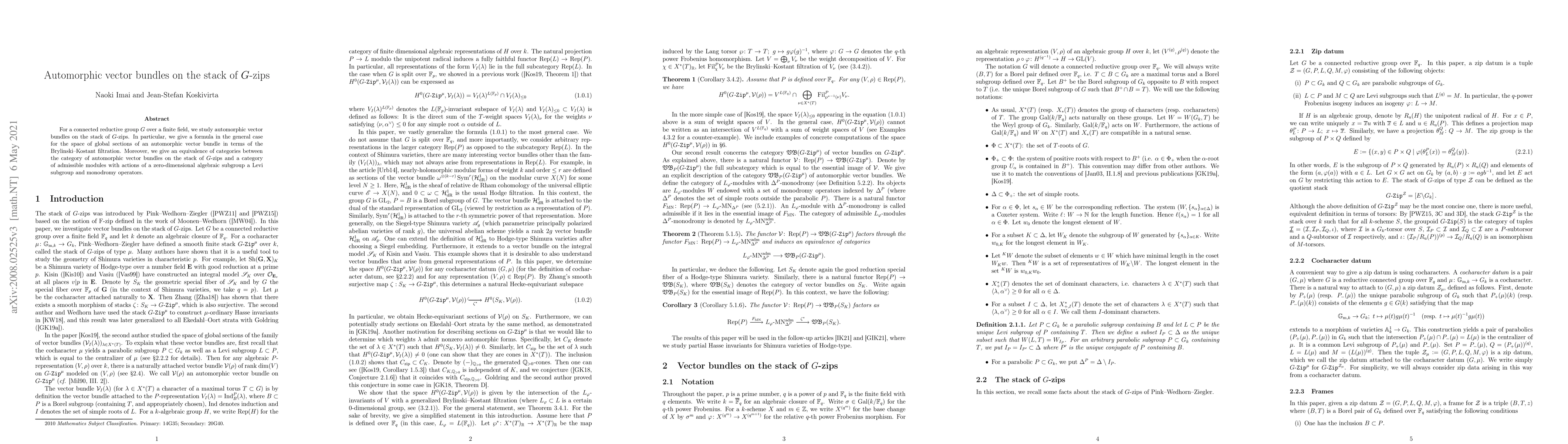 This research paper explores automorphic vector bundles on the stack of G-zips for connected reductive groups over finite fields, providing a formula for global sections and an equivalence of categories with admissible modules.