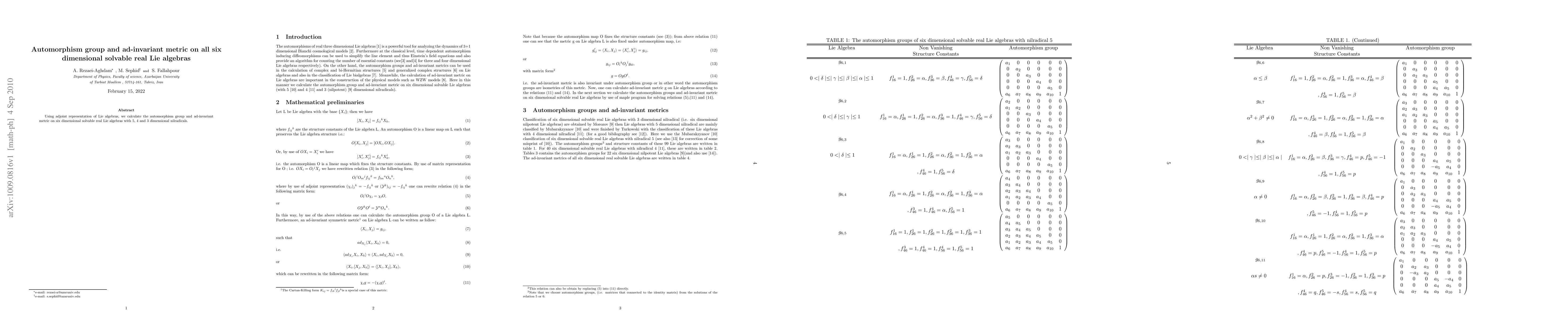 Summary: This research determines the automorphism groups and computes ad-invariant metrics for six-dimensional solvable real Lie algebras, focusing on those with 5, 4, and 3-dimensional nilradicals through the adjoint representation.