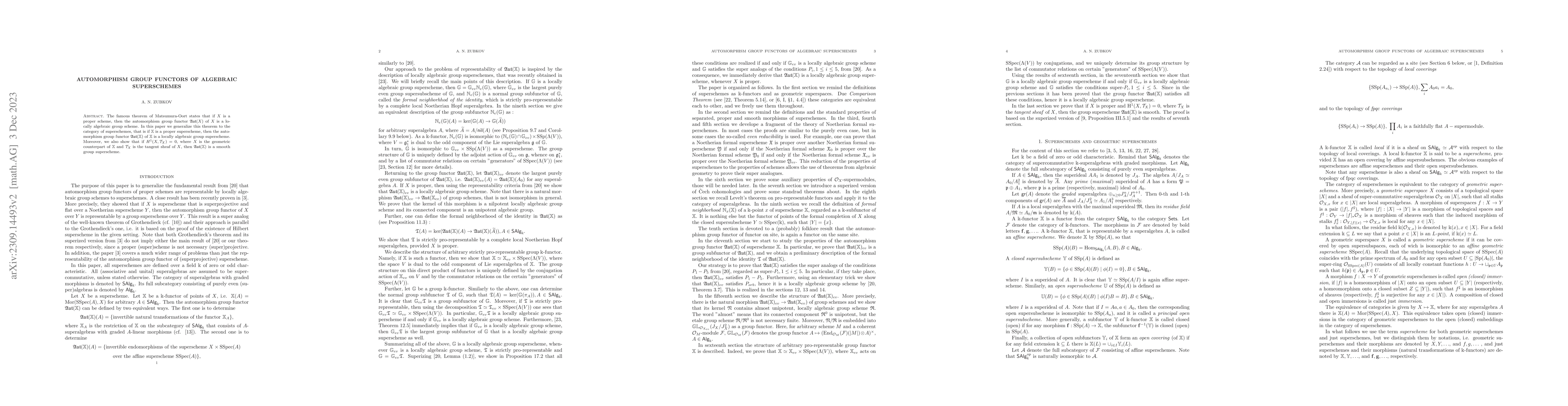 This paper generalizes the Matsumura-Oort theorem to algebraic superschemes, proving that the automorphism group functor of a proper superscheme is a locally algebraic group superscheme. Additionally, it demonstrates that if the first cohomology of the tangent sheaf of the underlying classical scheme vanishes, the automorphism group functor becomes a smooth group superscheme.